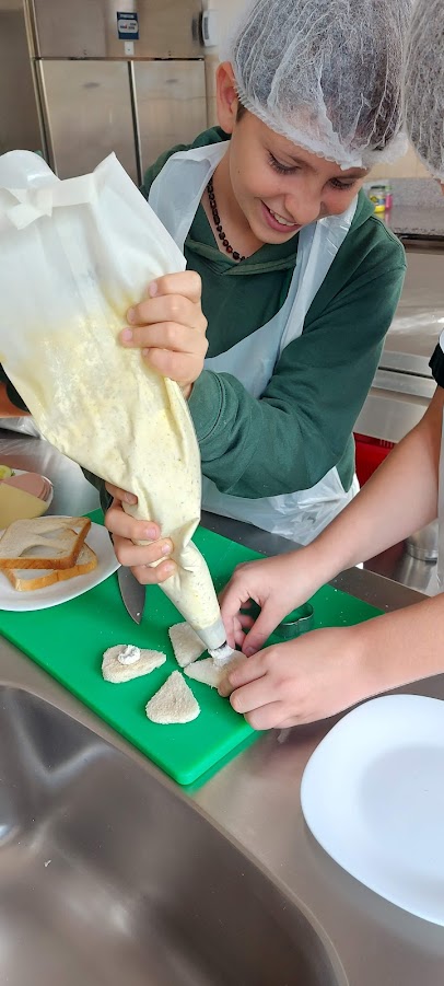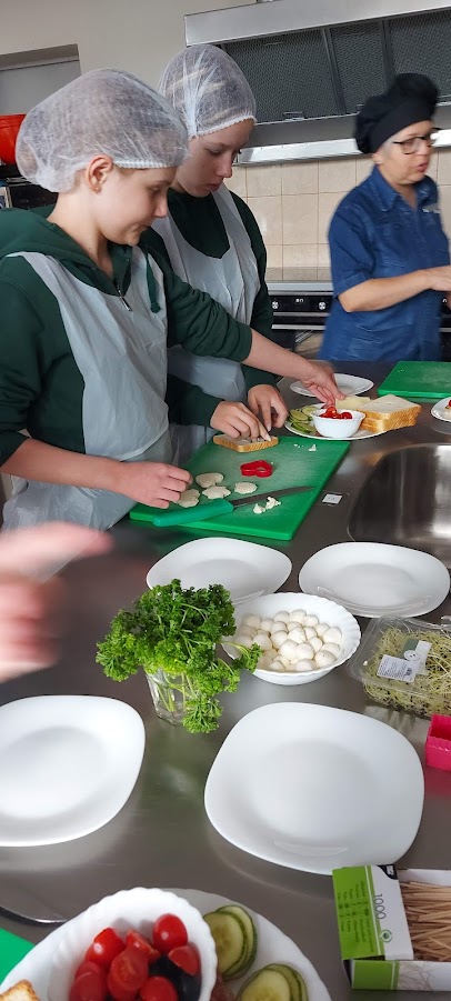 Technologijų pamoka 6b klasės mokiniams vyko Šiaulių technologijų mokymo centre. Mokiniai susipažino su šios mokyklos veikla, dalyvavo edukaciniame užsiėmime, kurio tema- ,,Proginės mini užkandėlės“. Pamoka pavyko. Grįžome įgiję naujų žinių ir skaniai padegustavę.