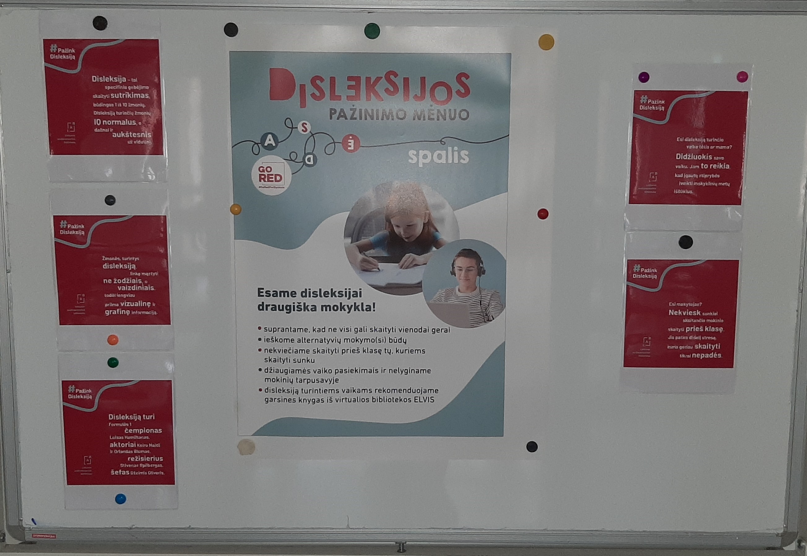 Ketvirtus metus iš eilės prie pasaulinės iniciatyvos „Go Red for Dyslexia“ jungiasi ir Lietuva. Mūsų mokykla į šią akciją įsitraukia jau antrus metus. Spalio 16 - 20 dienomis mokykloje buvo organizuota disleksijos pažinimo, supratimo ir palaikymo akcija, kurios metu mokiniai ne tik sužinojo ar prisiminė, kas yra disleksija, bet ir atliko įvairias užduotis. Akciją organizavo švietimo pagalbos specialistės.