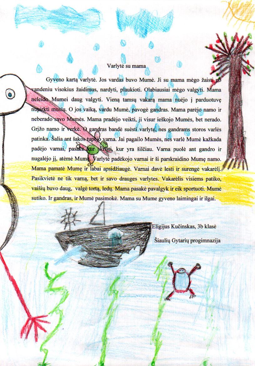 Renginio organizatorės progimnazijos specialistės logopedė Dalia Šukienė ir specialioji pedagogė Ligita Jankuvienė. Mokiniai kūrė pasakas ir jas iliustravo. Komisijos atrinkti darbai dalyvauja respublikiniame saviraiškos konkurse „Seku seku pasaką". Į respublikinį konkursą išsiųstos Edilijos Kalašnikovaitės 3a kl., Eligijaus Kučinsko 3b kl. ir Rasitos Brazauskaitės 4ckl. pasakos.