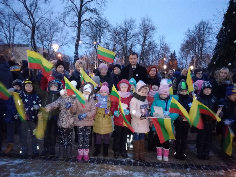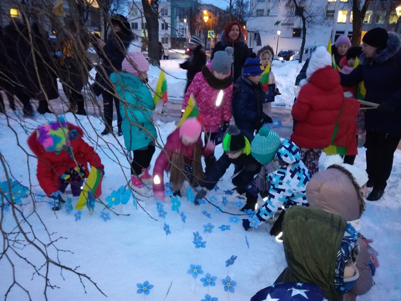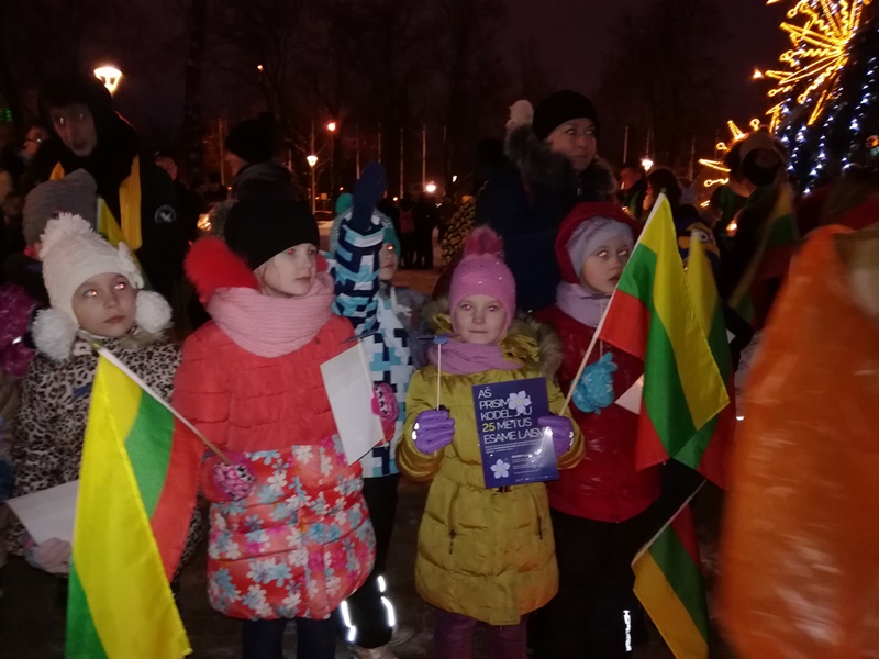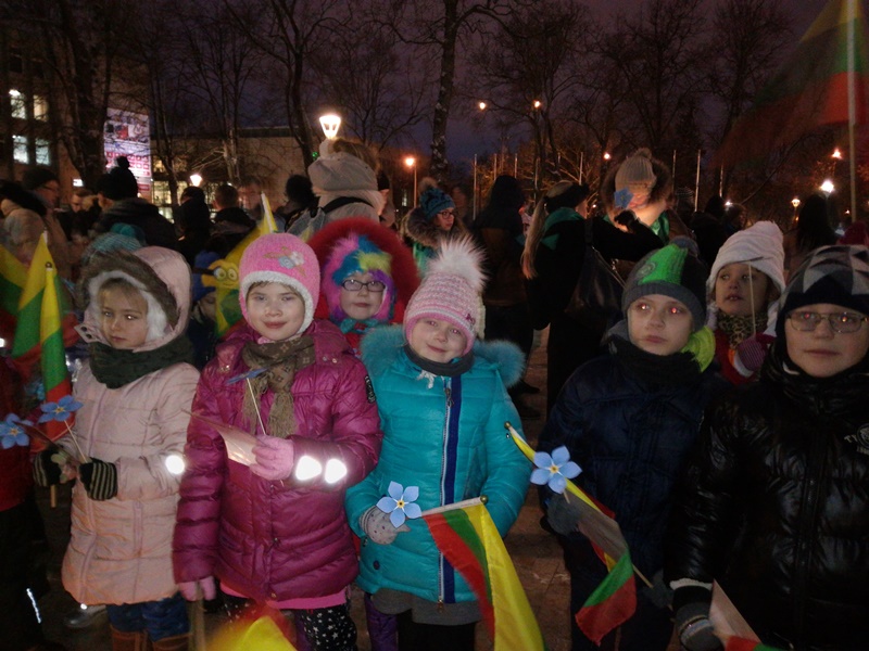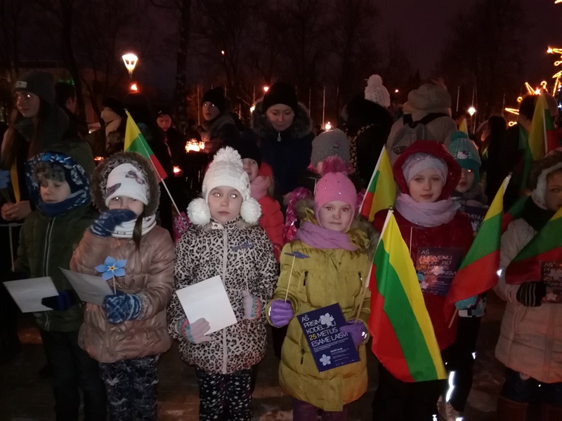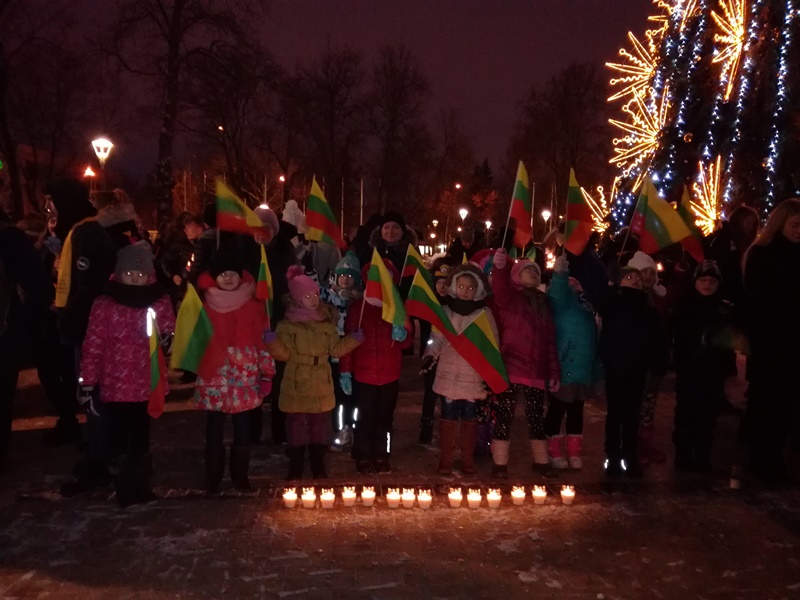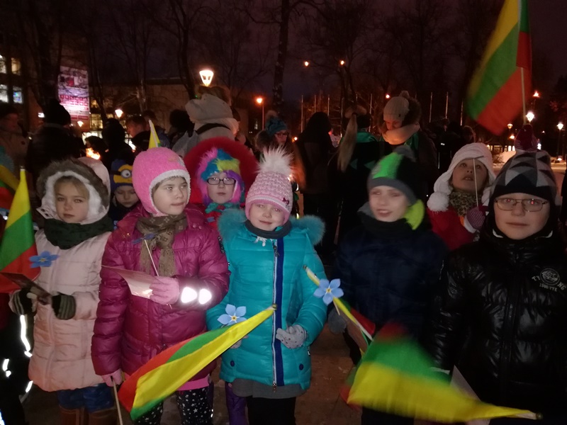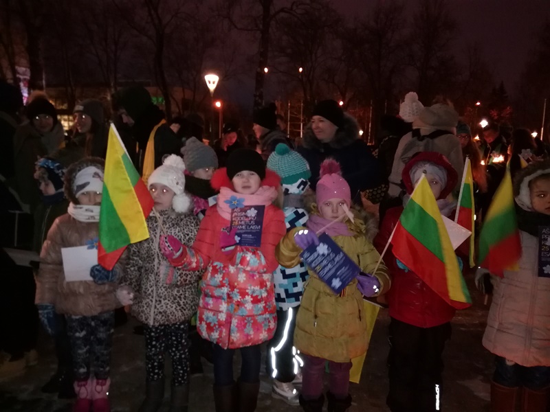 Mūsų mažiausieji – pirmokėliai iš 1c klasės ir PU grupės vaikučiai - atstovavo mūsų progimnazijai miesto renginyje „Laisvė..." Pasipuošę vėliavėlėmis mokinukai iš žvakučių dėliojo žodį „Laisvė", klausėsi prasmingų kalbų, dainų. Ir, žinoma, neliko nepastebėti žurnalistų, miesto mero. Dėkojame mokiniams, mokytojoms ir tėveliams, taip anksti išruošusiems, lydėjusiems vaikučius į miesto centrą.