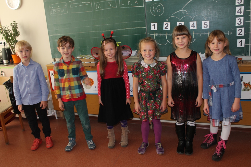 Ir ko tik tądien progimnazijoje nebuvo – pupsėjo ežiukai, skraidė fėjos, snieguolės ir burtininkės, pamokas lankė įvairiausi gyvūnėliai. Na, o vyresnieji, žinoma, buvo solidūs – juos puošė švarkai, kaklaraiščiai ir peteliškės. Puikiausiai atrodė atrodė kūno kultūros mokytojas Antanas Ramanauskas, kuris pasiruošęs peteliške vadovavo sportine apranga vilkintiems mokiniams.