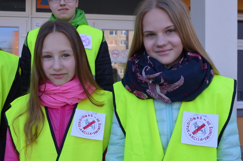 Ankstyvą trečiadienio rytą į mokyklą rinkosi būrelis aktyvių mokinių. Mokiniai dalyvavo akcijoje, kuria siekiama gyventojams priminti, jog vedžioti savo augintinius reikia specialiose aikštelėse, apleistose erdvėse, bet NE mokyklos stadione.