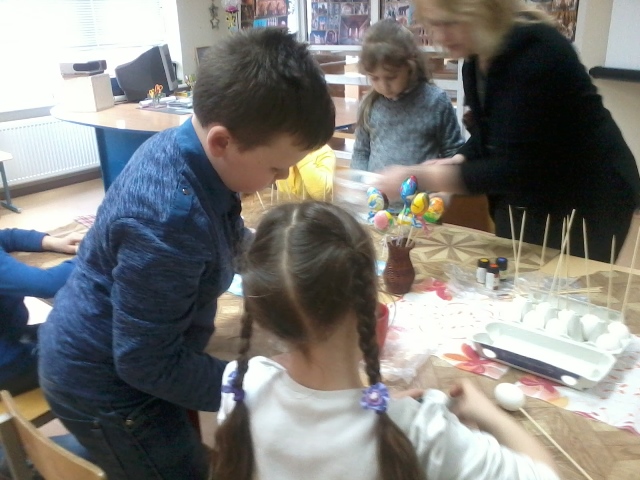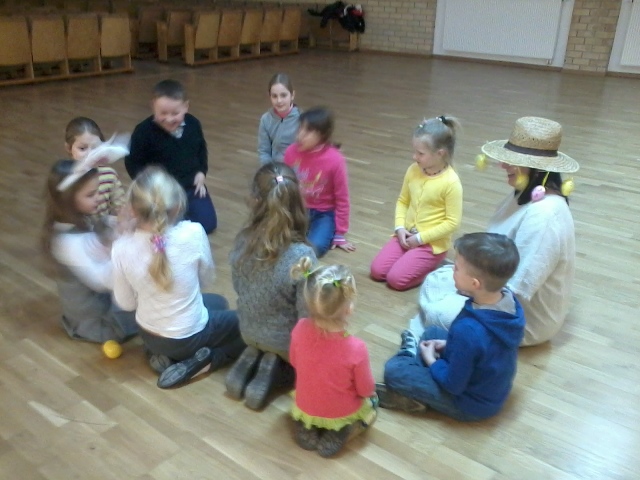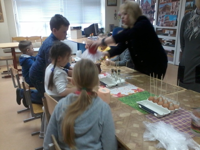 Čia vyko smagi šventė – VAIKŲ VELYKĖLĖS. Šį kartą pagrindiniai kiaušinių margintojai, velykinių darbelių kūrėjai buvo ne suaugę, o vaikučiai. Mažieji žaidė, vėliau kiaušinius įvairiausiomis technikomis margino, kad turėtų ką ridenti. Didžiulį džiaugsmą dovanojo pūkuoti mokyklos svečiai – triušiukai. Vaikams teko rimtas ir atsakingas darbas – pūkuočiams išrinkti vardus. Daugiausiai juoko sukėlė originalus vardas, tekęs mamytei triušei – Buldozeris.