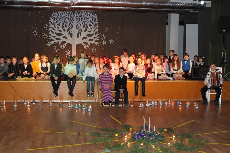 Tėveliai buvo maloniai nustebinti sklindančia žvakelių šiluma ir ramybe. Trečiokai deklamavo eilėraščius, vaidino, grojo akordeonu, pianinu, dainavo kalėdines dainas. Mokiniai užminė tėveliams mįslių, būrė, kokie bus ateinantys metai. Kiekvienai šeimai mokytojos padovanojo po angelėlį su malda už vaikus. Na, o šventės pabaigoje žvakių liepsnelėmis suspindo adventinis vainikas. Ačiū mokiniams, trečiokų mokytojoms, muzikos mokytojai N. Ganusauskienei.