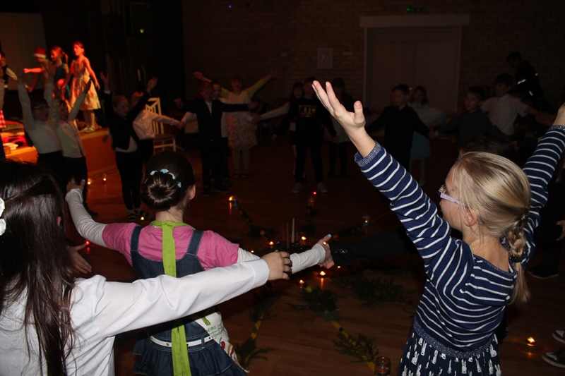 Gruodžio 16-ąją mokyklos aktų salėje vyko trečių klasių mokinių vakaronė „Laiko ratu".