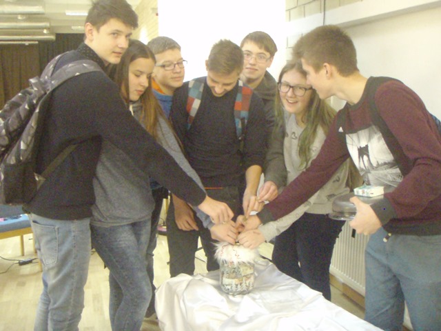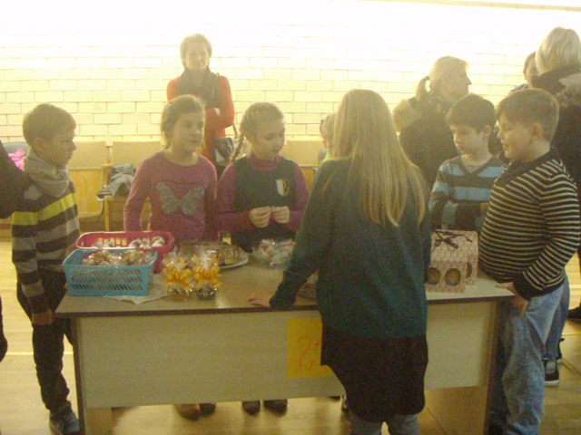 Kitą dieną indą papildė vyresnieji mokiniai, nes ketvirtoji pamoka buvo paskirta dalyvavimui akcijoje – dabar 5-8 klasių mokiniai prekiavo savo keptais keksiukais.