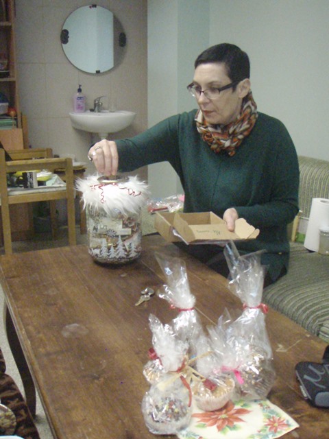 Dar būrelis mokinių su socialine pedagoge J.Girkantiene vyko į bendrą pietinio rajono mokyklų akciją prie „Aido" bibliotekos, kur praeiviams siūlė pirkti paramos keksiukus.