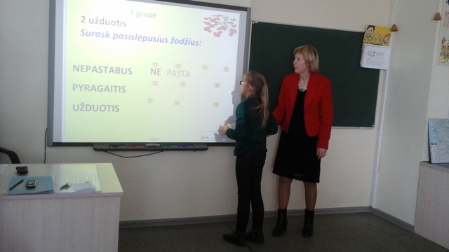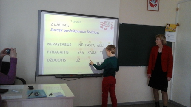 Renginio metu mokiniai atliko užduotis, dirbo su Smart lenta, sužinojo naujų žodžių, bendravo su bendraamžiais iš kitų mokyklų. Vaikai buvo aktyvūs, smalsūs, geranoriški. Šaunuoliai! Kartu su jais popietėje dalyvavo mokyklos logopedė Dalia Šukienė, pasiruošti padėjo mokytoja Džeralda Kuzavinienė.