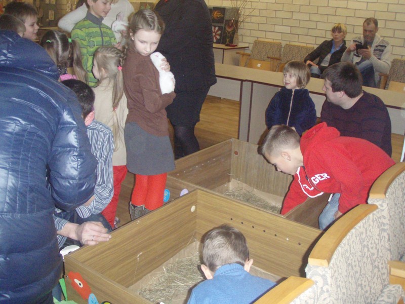 Ir ko tik čia nebuvo: atvykusius svečius pasitiko Domantė ir Laurynas su savo augintiniais triušiukais. Gyvajame kampelyje puikavosi ypatingos vištos ir gaidžiai, ką tik išsiritę putpeliukai, straksėjo didžiulis būrys triušiukų.