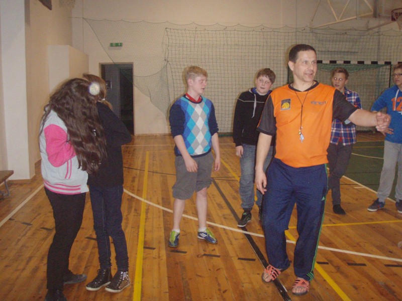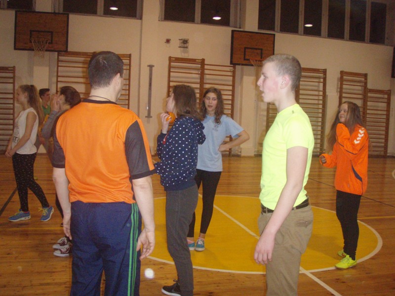 7b klasė pakvietė į sporto salę, kur teko aktyviai pajudėti, pamėtyti kamuolį.