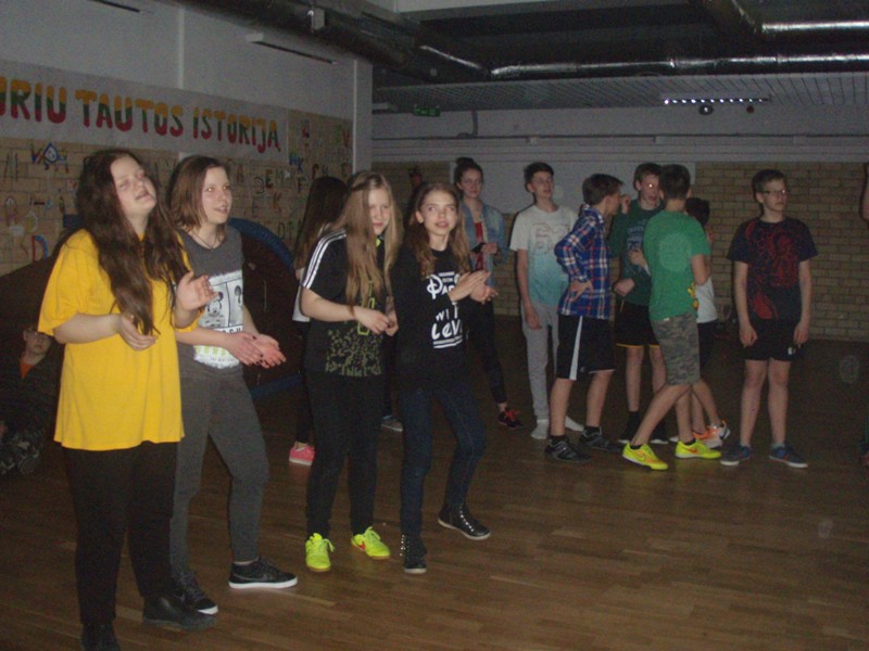 8b klasės aktyvistai pasiūlė visiems šokti, vėliau pakvietė žaisti kelis įdomius žaidimus,