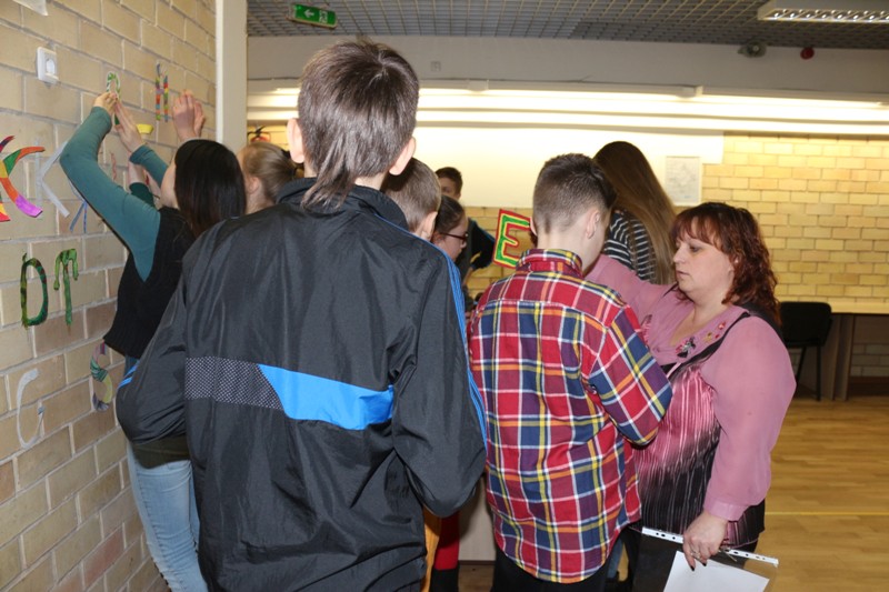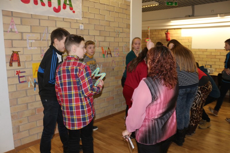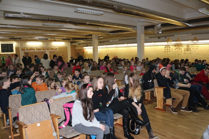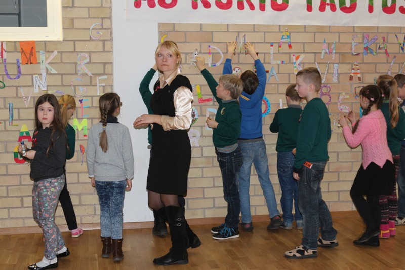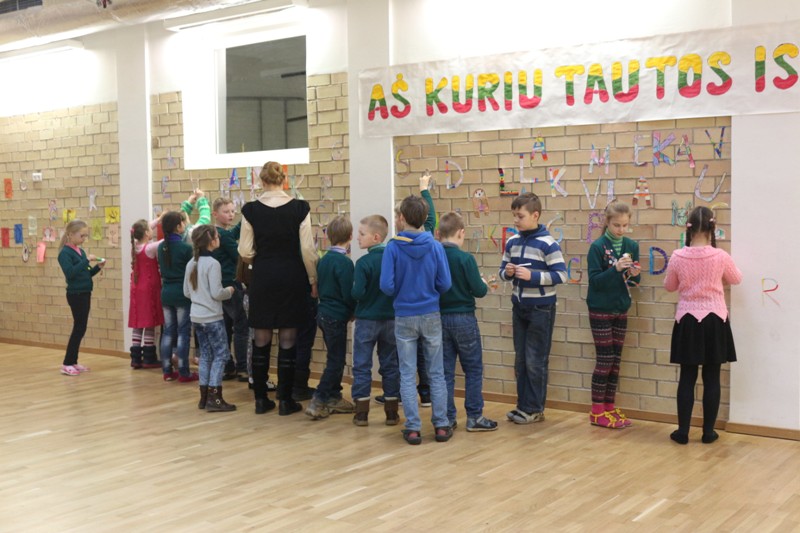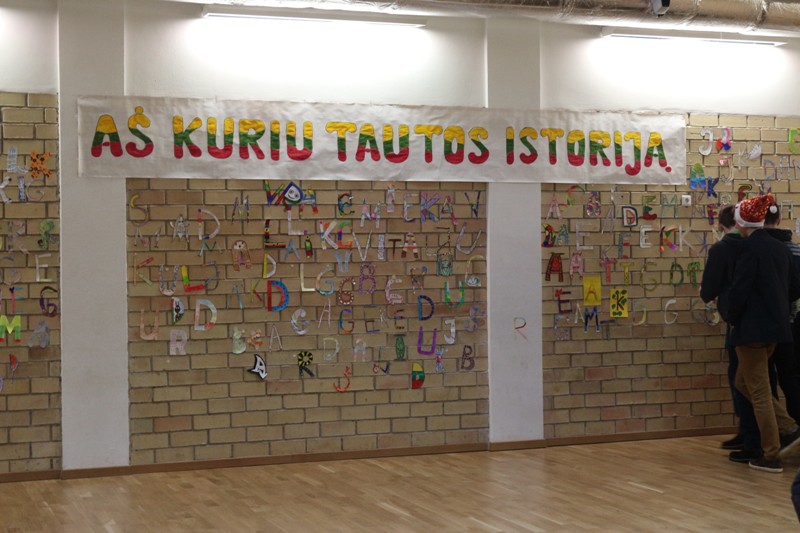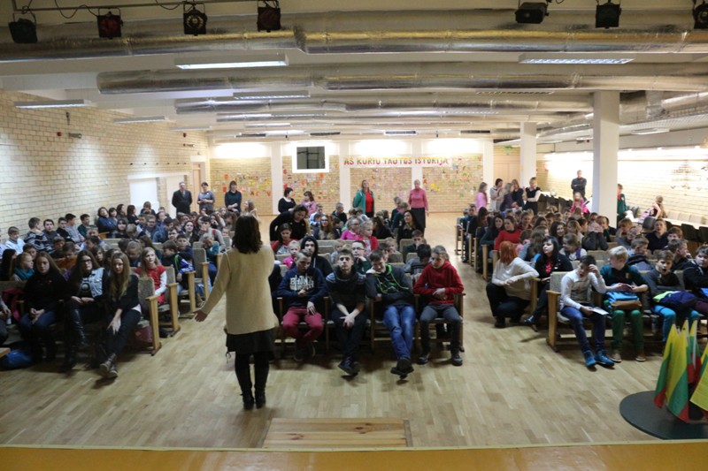 Vėliau, per patį vidurdienį aktų salėje vyko 1-8 klasių akcija „Aš kuriu tautos istoriją". Renginys skirtas vasario 16-ai, Lietuvos valstybės atkūrimo dienai paminėti. Kiekvienas mokinys prie sienos klijavo savo vardo pirmąją raidę taip patvirtindamas, kad jis supranta savo atsakomybę šeimai, savo ir valstybės ateičiai.