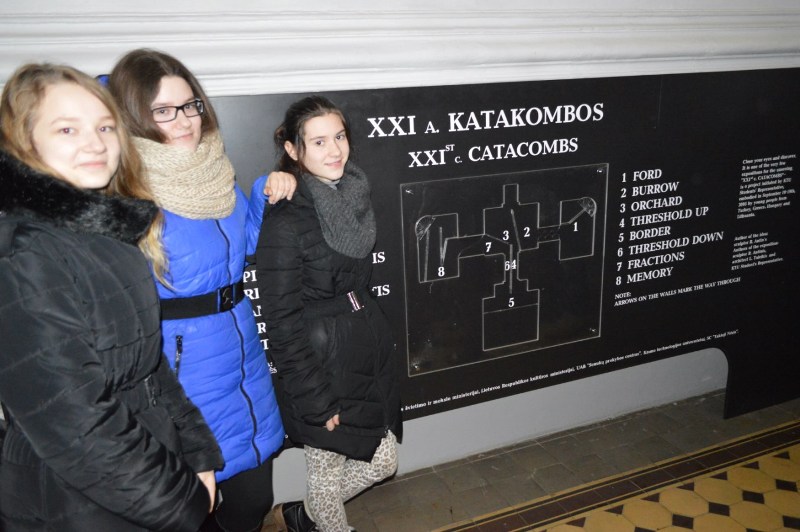 Pirmasis užsiėmimas buvo gana ekstremalus – leidomės į Kauno Soboro rūsius, kur yra įsikūręs Neregių muziejus. Tikrai nelengva pereiti labirintą visiškoje tamsoje. Daug emocijų sukėlė šis „panirimas" į neregių pasaulį, į visišką tamsą ir tylą.