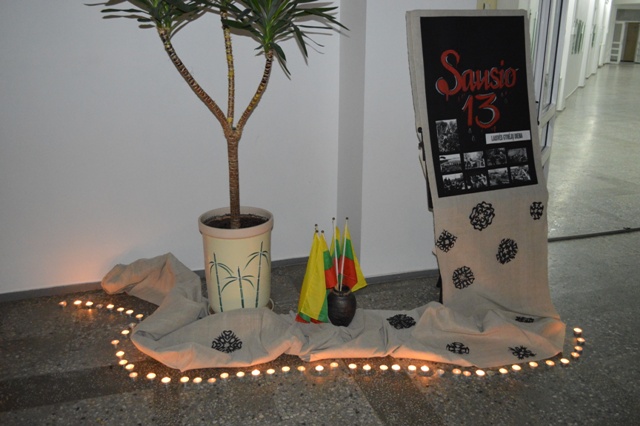Progimnazijos fojė visą dieną degė žvakės instaliacijoje, kurią sukūrė technologijų ir dailės mokytojos, taip ragindamos bendruomenę nepamiršti skaudžios patirties, mūsų Laisvės kainos.