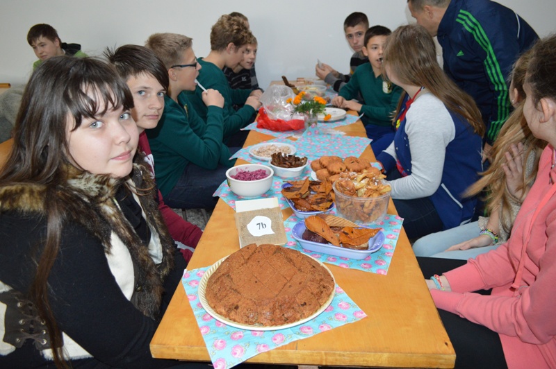 O tada – į valgyklą ruošti būriškų patiekalų. Visą valandą buvo ruošiami neįmantrūs, bet labai gardūs senovės baltų valgiai. Išradingai ir kūrybingai kiekviena klasė serviravo savo stalą, surašė patiekalų receptus.