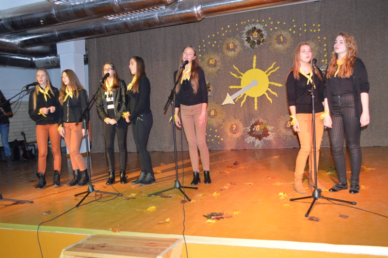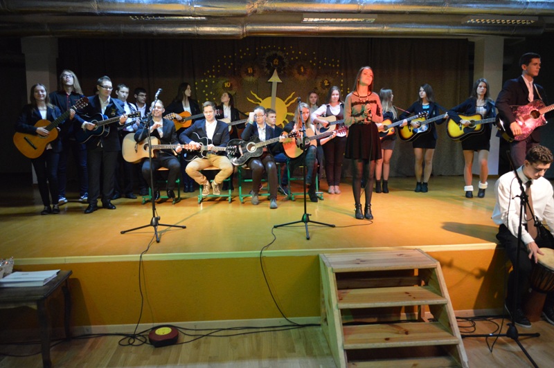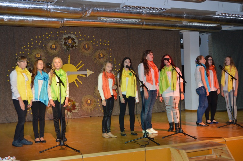 Lygiai vidurdienį į salę sugužėjo didžiulis būrys svečių iš 12 miesto ugdymo įstaigų: „Saulės" pradinės mokyklos, Lieporių, „Romuvos“, S.Daukanto, S.Šalkauskio, „Saulėtekio" gimnazijų, Salduvės, V.Kudirkos, Jovaro progimnazijų, Šiaulių miesto moksleivių namų, Šiaulių logopedinės mokyklos, „Ringuvos" specialiosios mokyklos. Žinoma, pasirodė ir mūsų progimnazijos dainininkai. Šokėjai, dainininkai, muzikantai, jaunieji artistai padovanojo fantastišką didžiulį ir šiltą koncertą, kuriam ir pasibaigus scenoje dar skambėjo muzikos improvizacijos.