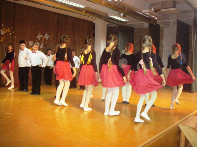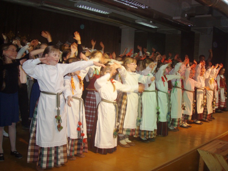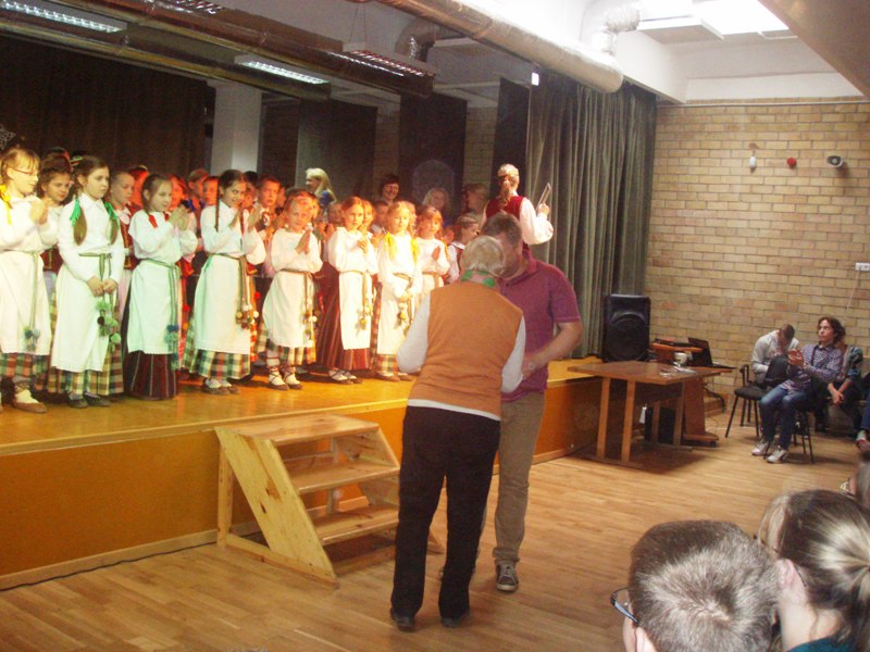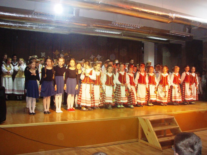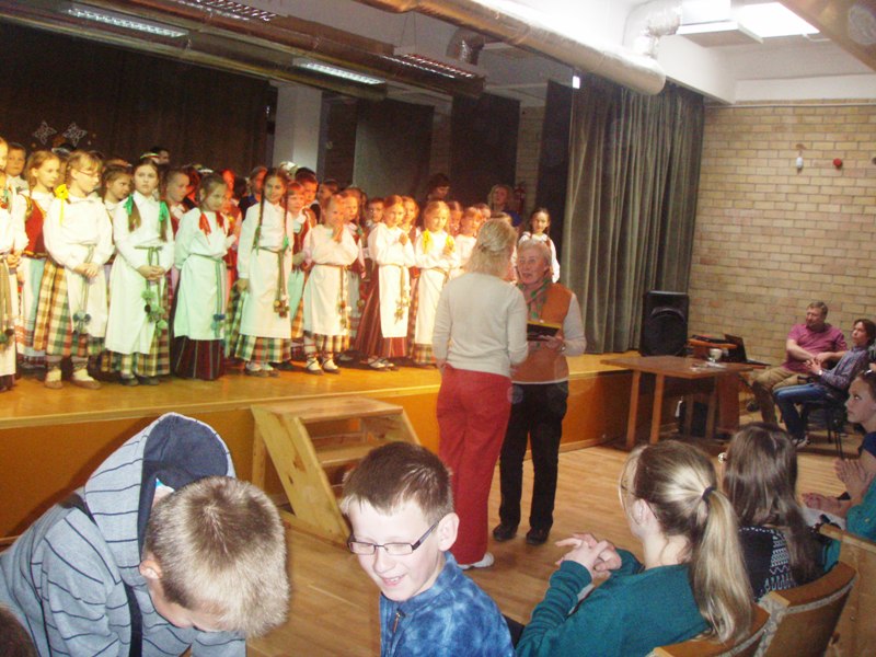 Puikią dovaną – koncertą – mums įteikė svečiai iš Kauno J.Grušo meno mokyklos. Koncertavo tautinių šokių kolektyvas ,,Gintarėlis" (vadovė Ina Skirmantienė) ir folkloro ansamblis „Skudutis" (vadovė Dalia Razumienė), šoko, muzikavo per 100 mokinių.