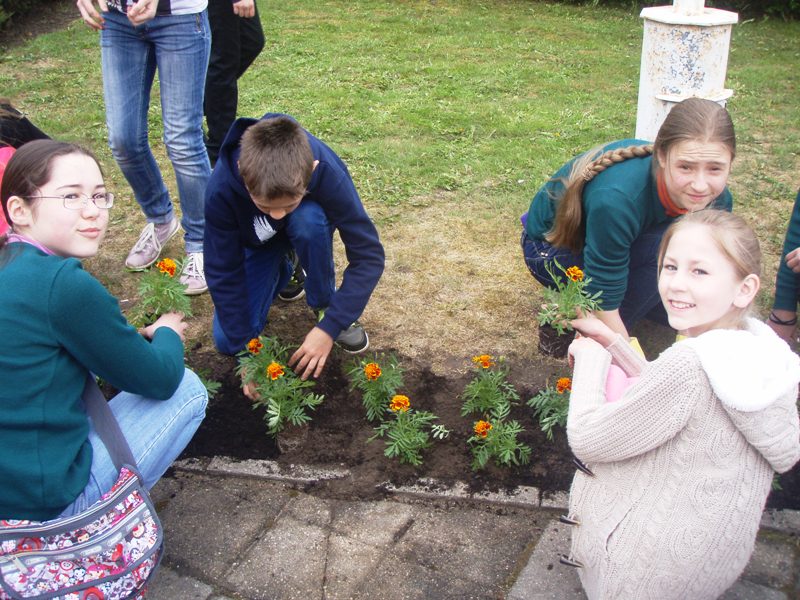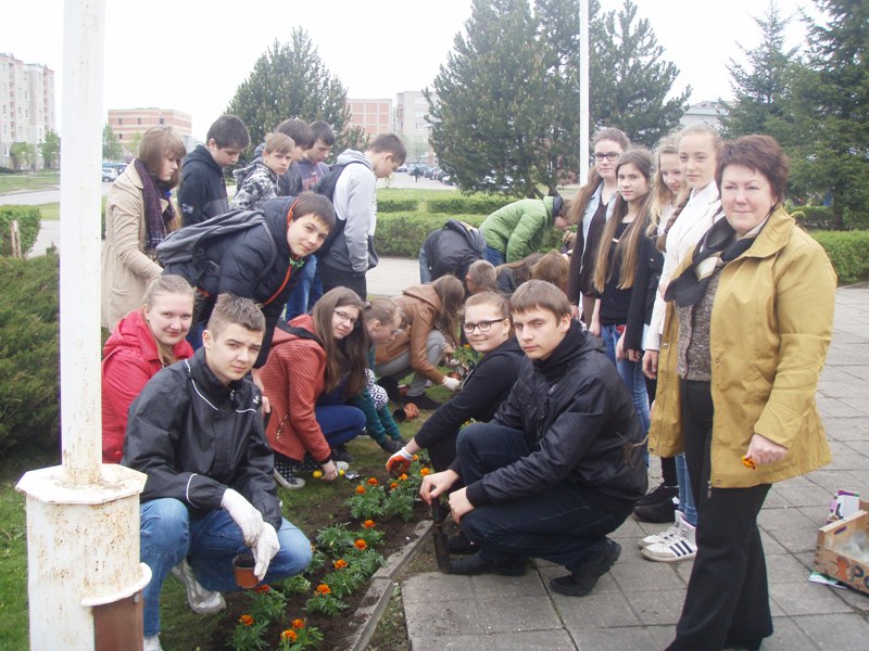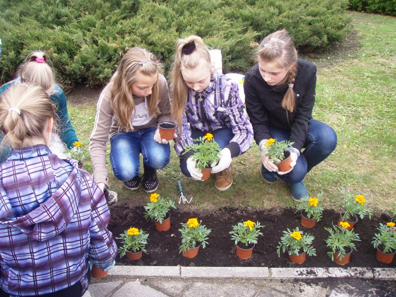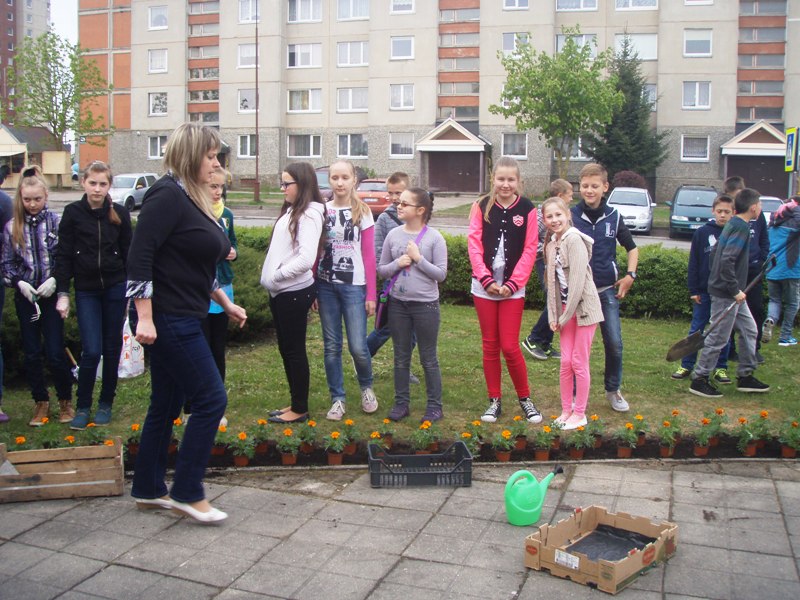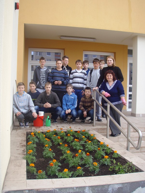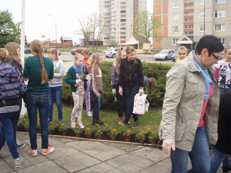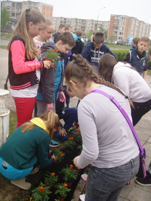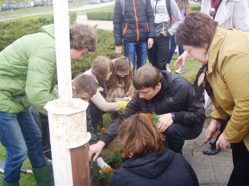 Jau tampa graži tradicija gimtadienio proga papuošti mokyklos aplinką. Praėjusiais metais sodinome ąžuoliukus, o šiemet kiemą papuošėme gėlėmis.