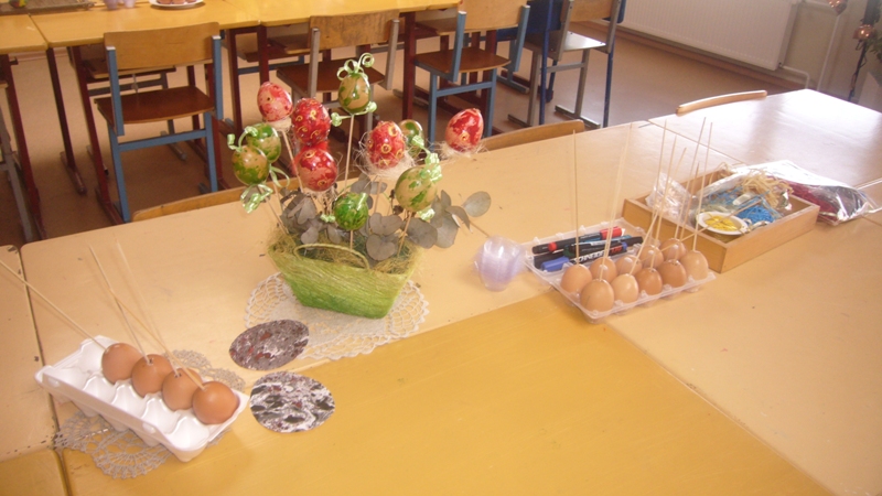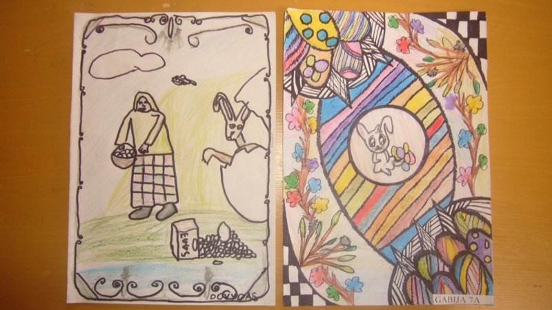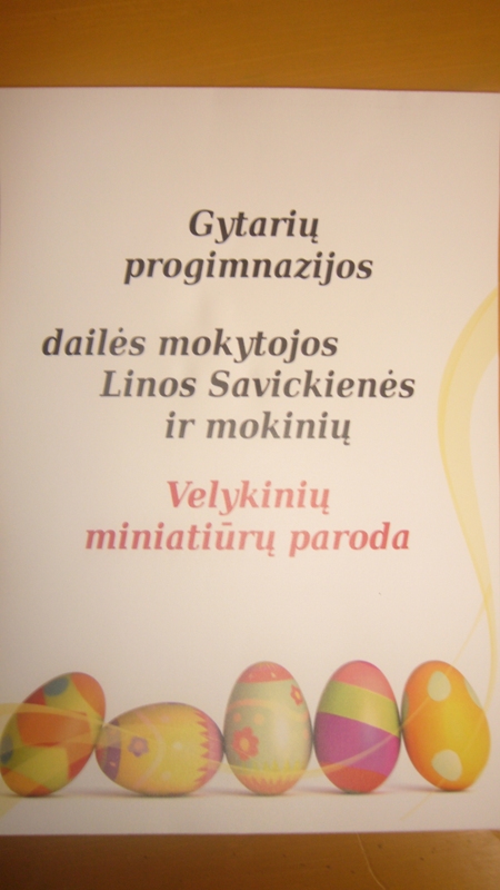Balandžio 17 d. pavasarį pasitikome kūrybiškai artėjančių šv.Velykų šventėje. Šventės metu vyko Velykinių kiaušinių marginimo technikos praktiniai užsiėmimai, idėjos kiaušinių dėklams gaminti, veikė paroda „Velykinė simbolika, puošyba“, mokytojos L.Savickienės ir mokinių Velykinių miniatiūrų paroda, penktokų grotažų paroda „Gyvybės medis“, mokytojos R.Dainienės mokinių Velykinių karpinių paroda. Šių parodų autorės ir užsiėmimų vadovės mokytojos R.Dainienė ir L.Savickienė.