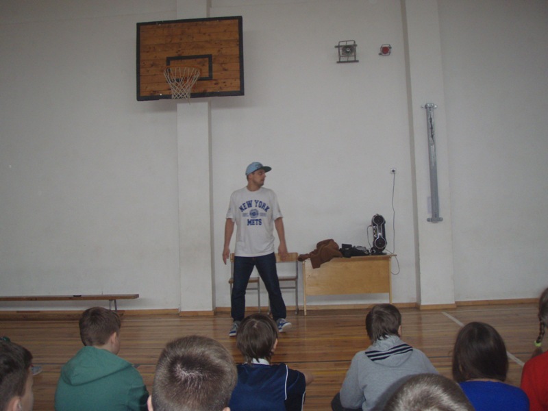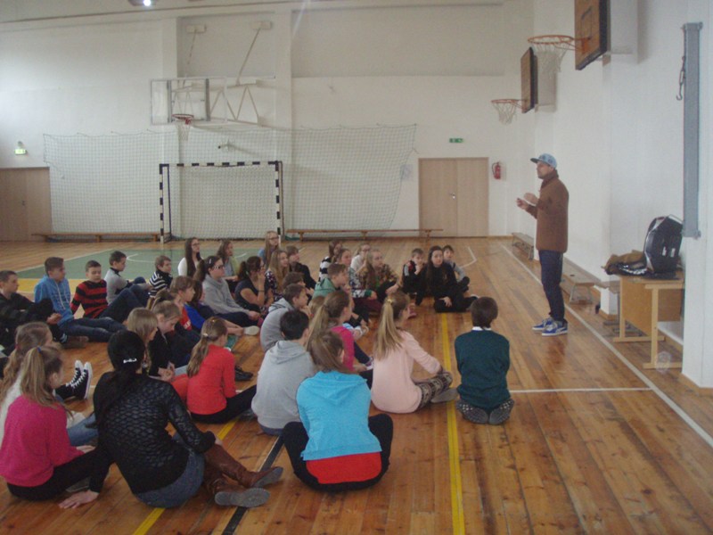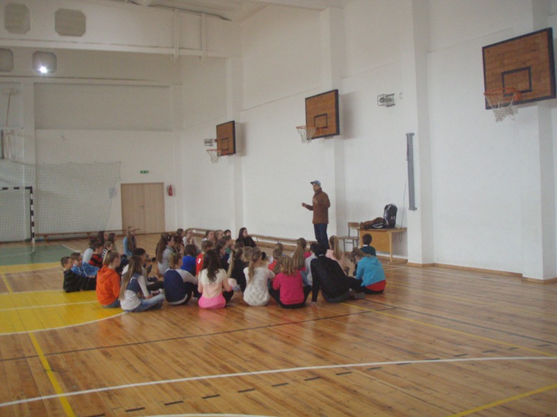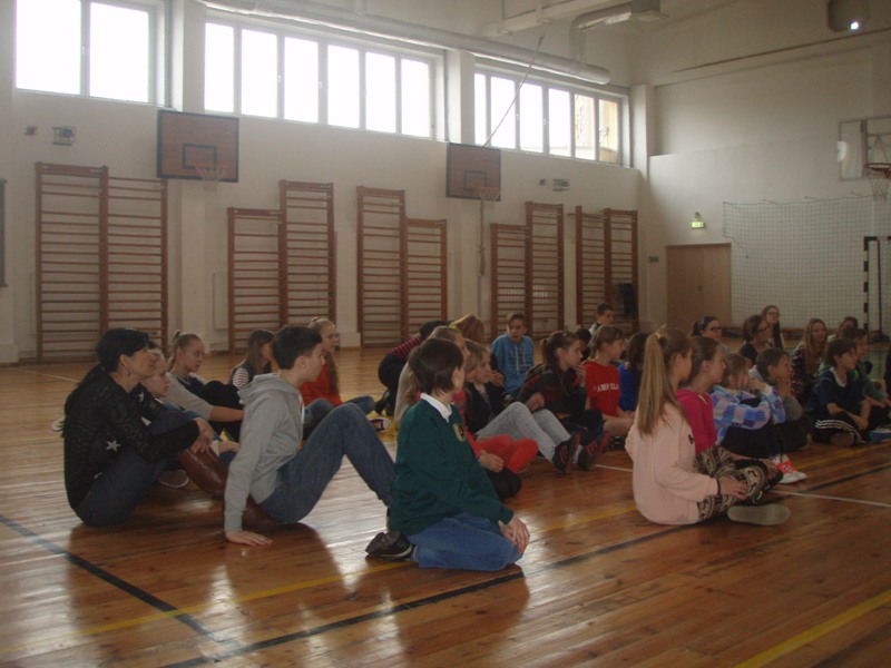 Pirmosios dvi valandos buvo skirtos sportui. Su mokiniais ir mokytojais bendravo žymūs Šiaulių miesto sportininkai: berniukų futbolo treneris S.Petrauskas, nacionalinės moterų futbolo komandos treneris R.Viktoravičius, žolės riedulio trenerė D.Grigienė, karate treneris G.Melinis bei krepšinio klubo „Šiauliai" vadovai, treneriai G.Petrauskas ir V.Pauliukėnas. Po pokalbio – veikla. Mokiniai rinkosi, kokioje nori dalyvauti – karate mankštoje ar žolės riedulio estafetėse.