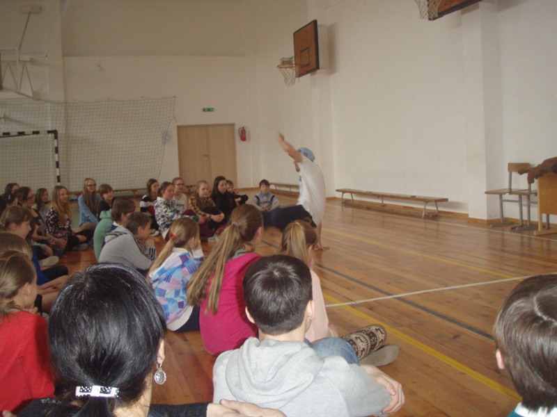 Antrąją veiklos dalį skyrėme menams. Apie savo darbą, talentą kalbėjo muzikantas, aktorė, choreografas ir kūrybinių projektų vadovė. Žinoma, apie meną geriausiai ne kalbėti, o veikti. Gytariečiai ir rinkosi, ko norėtų pabandyti – padainuoti su grupės „Vairas" dainininku R.Janušu, vaidinti su Panevėžio dramos teatro aktore G.Dumbliauskiene, šokti gatvės šokius su grupės „Extreme" vadovu D.Marcinkumi ar ,,pastatyti", įrengti namą, sukurti jam interjerą su projektų vadove J.Račkauskiene.