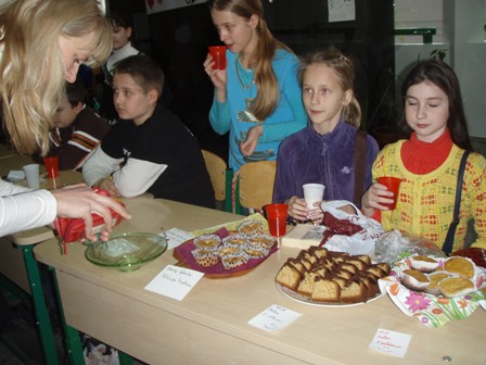 Pyragų, sausainių, saldainių, riestainių gausybė, ąsočiai sulčių, arbatos ir giros, galybė rankdarbių, papuošalų ir suvenyrų. ,,Čigonai” iš 8a būrė pageidaujantiems ateitį, vyko loterijos be pralaimėjimų, įvairūs būrimai.