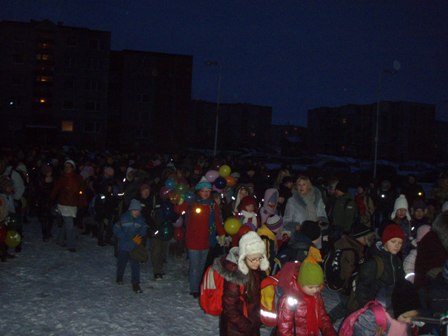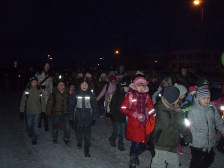 Patys mažiausieji pasikeisdami skambino varpeliu, kol visi laimingai pasiekėme progimnaziją K.Korsako gatvėje.