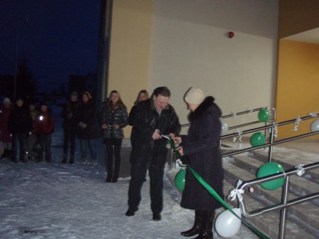 Prie naujojo pastato mokinius pasitiko progimnazijos direktorius Rimtautas Pečeliūnas. Pasidžiaugęs, jog pagaliau turime naujas, renovuotas patalpas, perkirpo juostelę ir gytariečius pakvietė į pirmąją pamoką.