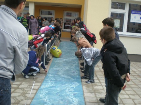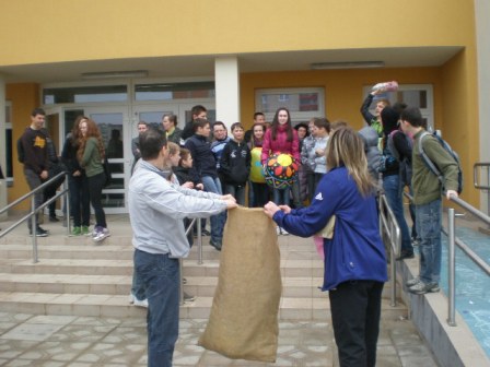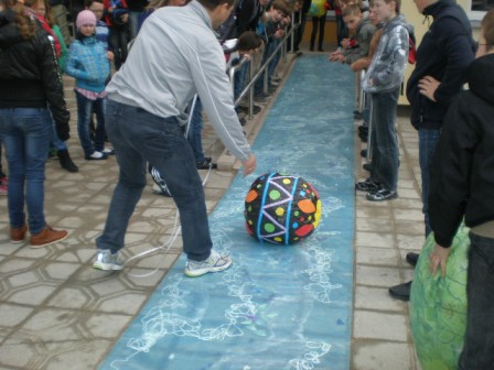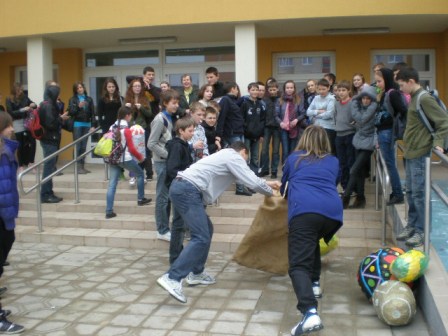 Kūno kultūros mokytojai surengė ir sportines žaidynes. Mokiniai turėjo ridenti pačių pagamintus didelius margučius kuo toliau, kuo taikliau juos įmesti į maišą .