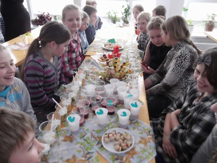 Ketvirtadienis Šiaulių Gytarių progimnazijos pradinukams - pati smagiausia ir saldžiausia diena. Ketvirtadienį mokiniai patys organizavo "Kulinarinį šou". Kiekviena klasė sugalvojo, kuo pavaišins draugus ir mokytojus. Pirmokai vaišių stalui paruošė mažų sumuštinukų, antrokai prikepė sausainių, trečiokai plakė įvairių skonių kokteilius, ketvirtokai vaišino vėrinukais ir vaisių salotomis su jogurtu. Kiekviena klasė išradingai ir linksmai pristatė savo vaišes. Mokiniai džiaugėsi renginiu, jo idėja, bendru darbu ir gera nuotaika.