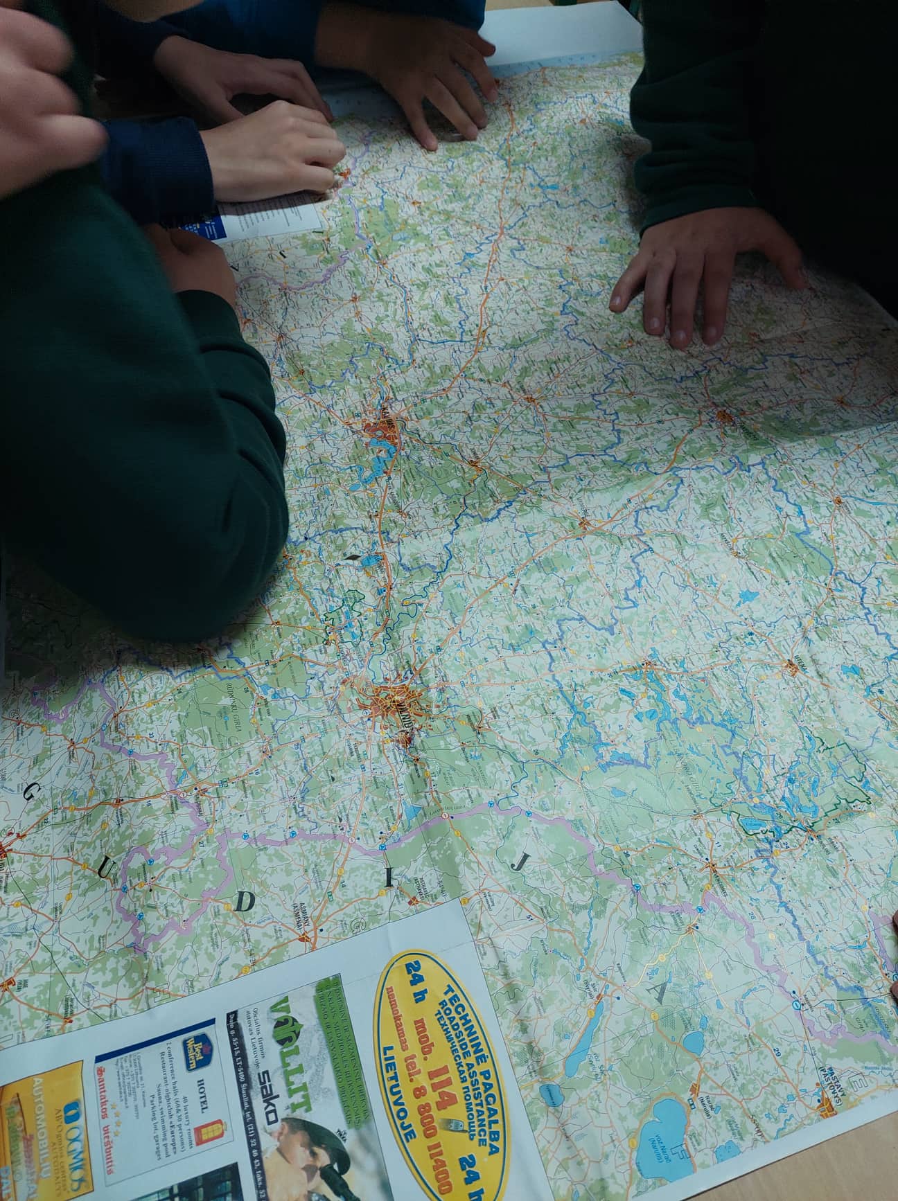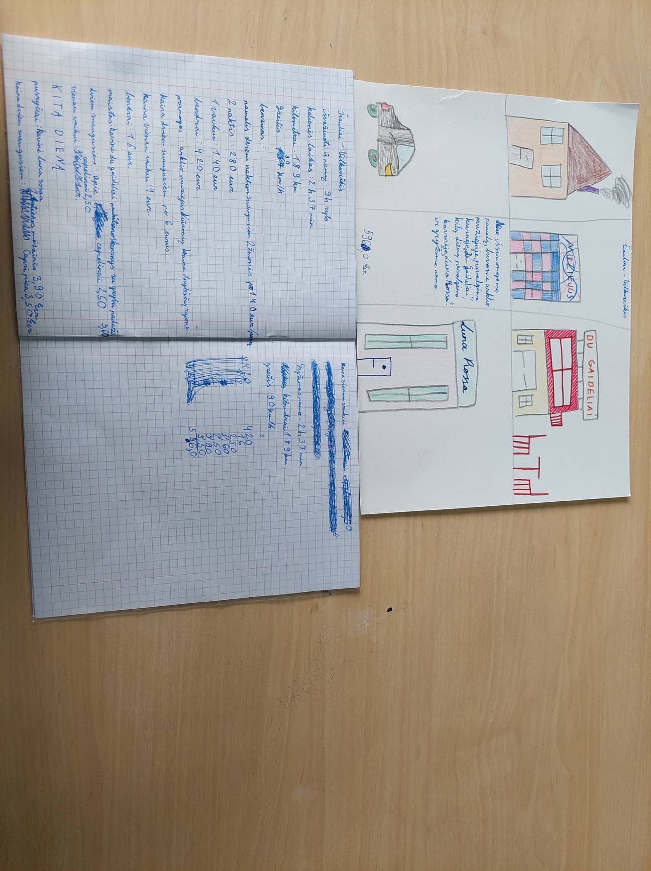 Integruotos matematikos, geografijos ir IT veiklos metu, mokiniai ruošė savo šeimos išvykos planą. Numatė kelionės tikslą, laiką, įvertino transporto, maitinimo, nakvynės bei planuojamų pramogų išlaidas. Ieškojo internete ir domėjosi kokiu greičiu važiuoja automobilis, kokios kuro sąnaudos, ieškojo lankytinų objektų norimame mieste, aiškinosi bilietų kainas. Mokiniai skaičiavo atstumus pagal mastelį žemėlapyje bei mokėsi naudotis mastelio skaičiuokle https://skaiciuokle.lt/skaiciuokles/mastelio-skaiciavimas ,