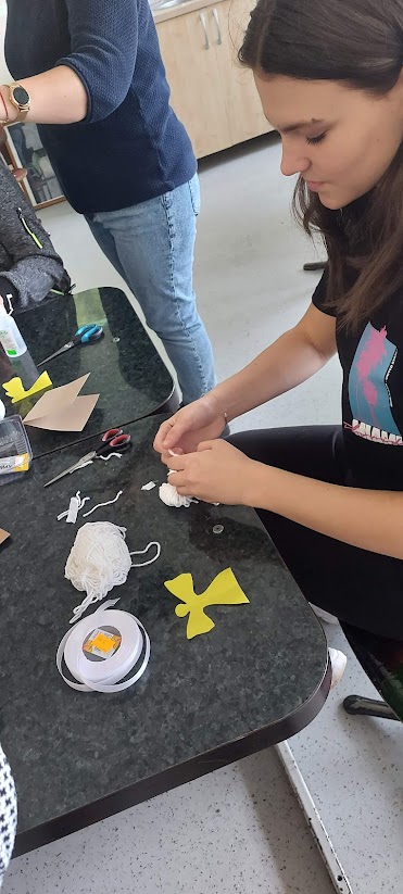 Spalio 14 dieną Mūsų mokyklos aštuntokės: Gabrielė Norkutė, Domantė Pokvytytė ir Ermida Oksaitė kartu su technologijų mokytoja Ilona Jankauskiene ir tikybos mokytoja Nijole Meliniene dalyvavo Šiaulių miesto mokyklų 7-8 klasių mokinių integruotų (technologijos ir dorinis ugdymas) kūrybinių dirbtuvių „Angelai – Dievo pasiuntiniai“ projekte, kuris vyko Šiaulių Medelyno progimnazijoje. Mergaitės su kitų mokyklų mokiniais mokėsi įvairia technika kurti Angelus. Gabrielė - tekstilės būdu, Domantė – lipdymo, o Ermida- stiklo keramikos būdu sukūrė puikius Angelus ir buvo apdovanotos padėkomis bei gausiais plojimais. Džiaugiamės kūrybingomis merginomis ir linkime, kad jas ir jų mokytojus visada globotų Angelai Sargai.