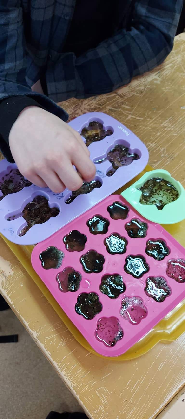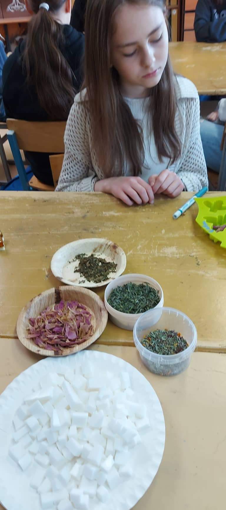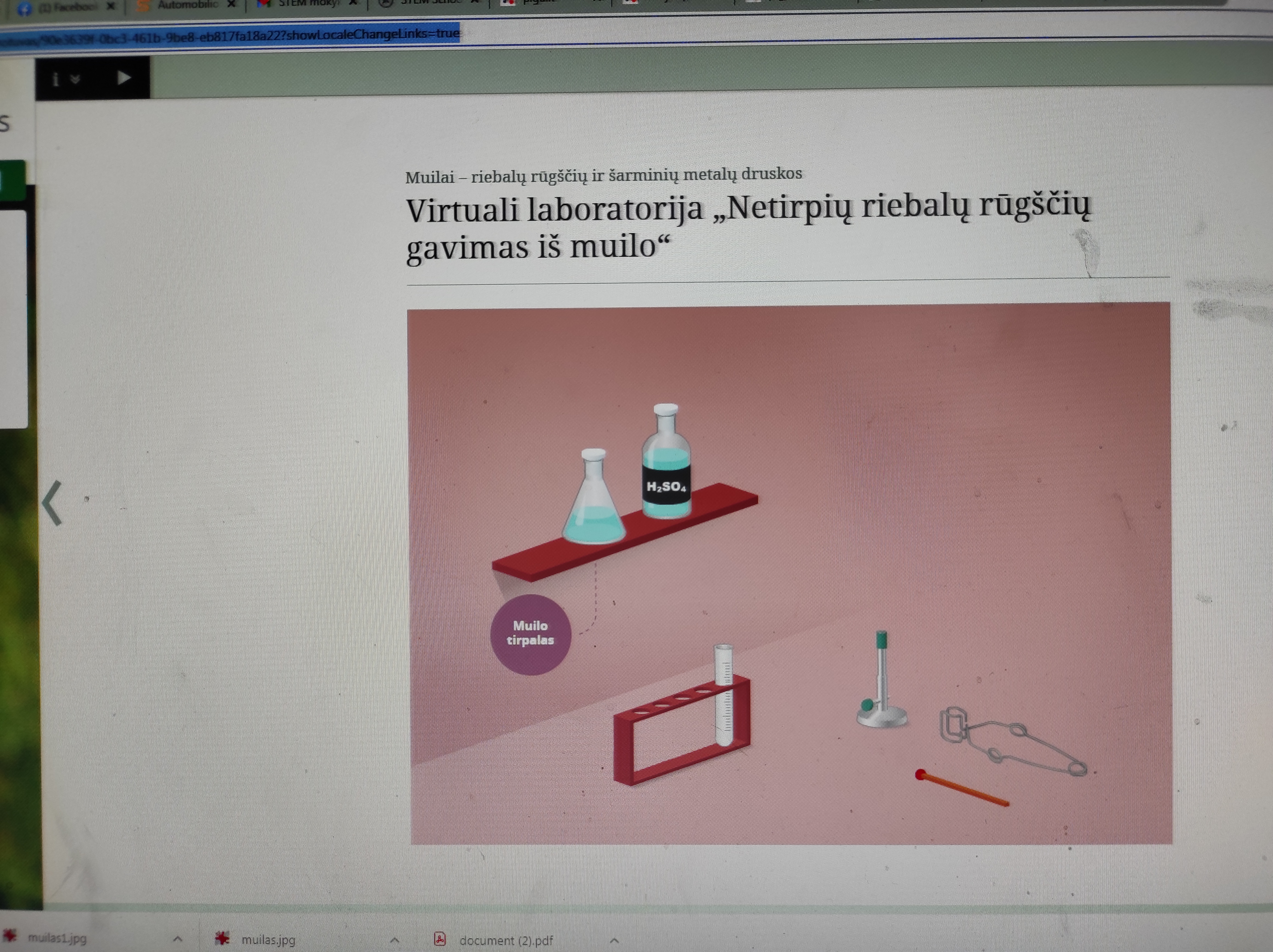 Integruota chemijos ir technologijų veikla Integruota chemijos ir technologijų veikla aštuntų klasių mokiniai analizavo temą "Muilai - riebalų rūgščių ir šarmų druskos". Mokiniai domėjosi muilų atsiradimo istoriją, analizavo medžiagas reikalingas muilams gaminti, išbandė ugdymo sodo virtualią laboratoriją https://sodas.ugdome.lt/grotuvas/90e3639f-0bc3-461b-9be8-eb817fa18a22?showLocaleChangeLinks=true, ruošė informacinius lankstinukus apie muilų naudą, panaudojimo galimybes. Bendradarbiaujant su UAB ,,Dailės prekės“ dailės studijos SKIZZE atstovais dalyvavo edukaciniame užsiėmime ,,Ekologiško muilo liejimas ir pakavimas“. Mokiniai susipažino su ekologiško muilo gaminimo procesu, išmoko atpažinti tikrus eterinius aliejus. Vėliau pasiruošė muilo masę, išsirinko patinkusias formeles, kvapus, papuošimus, pagamino muiliukus bei išmoko jų pakavimo meno. Gamtos mokslų mokytoja Irma Bartkevičienė Technologijų mokytoja Ilona Jankauskienė