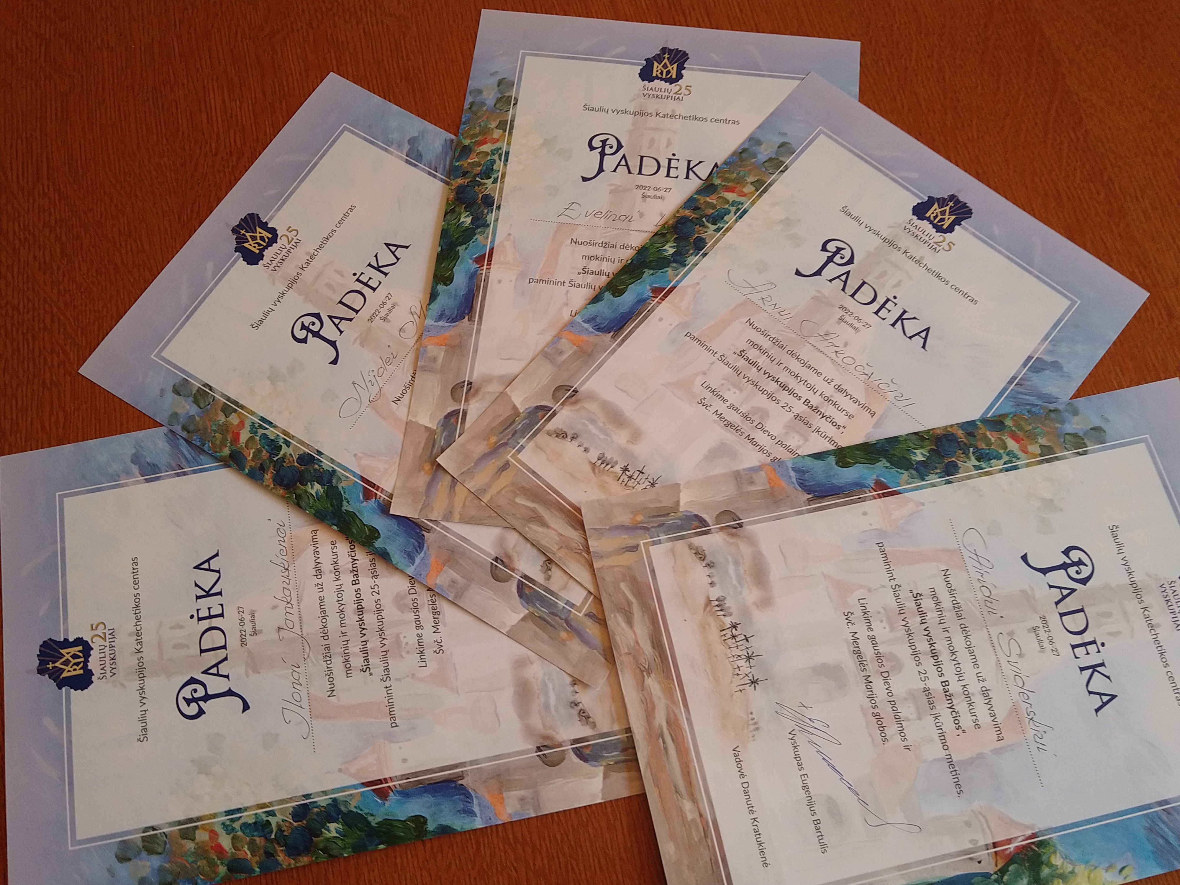 2022 m. Šiaulių vyskupija mini jubiliejines 25-ąsias įsteigimo metines. Keliaudami šį Sinodo kelią esame raginami Šiaulių vyskupo Eugenijaus Bartulio prisiminti ir savo vyskupijos kelionę: kokią bendrystę išgyvename kartu, ar patys esame aktyvūs bendruomenės nariai, ar visi dalinamės bendra atsakomybe už Bažnyčią? Šiaulių vyskupijoje iš viso yra 69 parapijos ir 72 bažnyčios išsiskiriančios savo architektūra, istorija, tikėjimo patirtimis, bendruomenės tradicijomis. Šiaulių vyskupas Eugenijus Bartulis ir Šiaulių vyskupijos Katechetikos centras (ŠVKC) kovo- balandžio mėn. kvietė vyskupijos mokinius ir mokytojus dalyvauti kūrybinių darbų konkurse Šiaulių vyskupijos BAŽNYČIOS.                                                     Konkurso tikslas – sukurti invokaciją ir per įvairias menines raiškos formas pavaizduoti Šiaulių vyskupijos BAŽNYČIAS. Mūsų mokyklos 1-8 kl. mokiniai , lankantys tikybos pamokas, dalyvavo šiame konkurse ir iš visų dalyvavusių 4 darbai tapo prizininkais bei pateko į leidinį „Šiaulių vyskupijos BAŽNYČIOS“ , skirtą Šiaulių vyskupijos įsteigimo 25-ečiui paminėti . Taigi šie mokiniai: Vaikevičiūtė Evelina (8b), Airidas Sviderskis (8b), Atkočaitis Arnas (7a), Razminaitė Adelija (7a) ir juos ruošusios mokytojos Ilona Jankauskienė ir Nijolė Melinienė bus apdovanoti birželio 27 d. Šiaulių vyskupijos tikybos mokytojų mokslo metų pabaigos susirinkime. Sveikiname laimėtojus ir nuoširdžiai dėkojame visiems dalyviams. Jūs visi šaunuoliai!