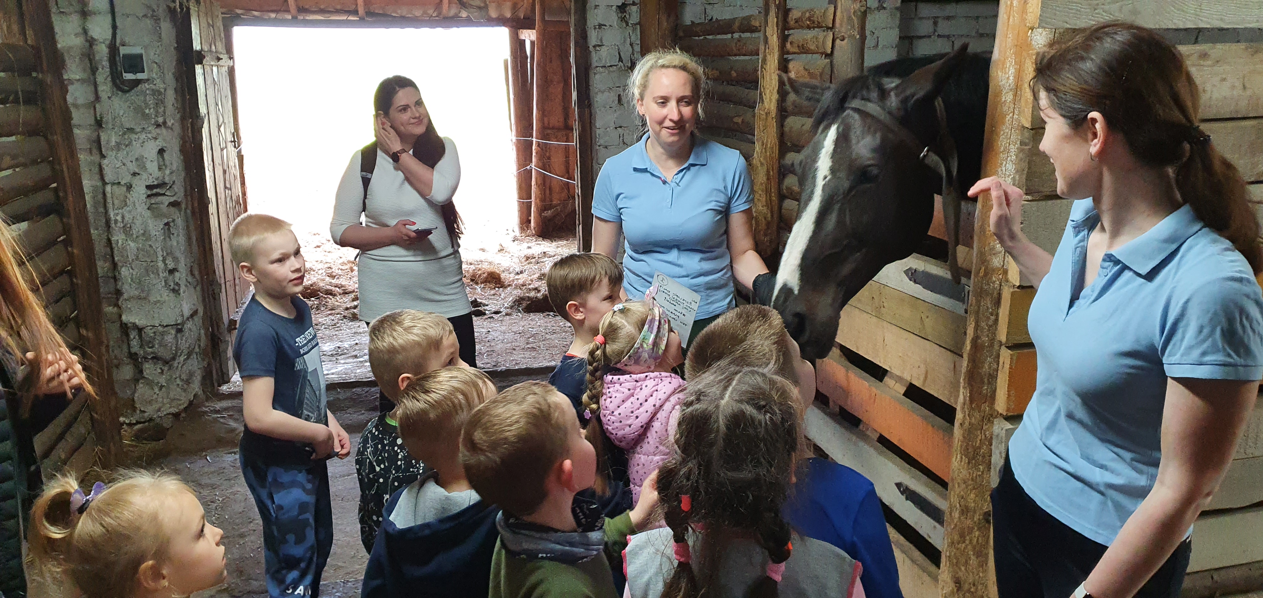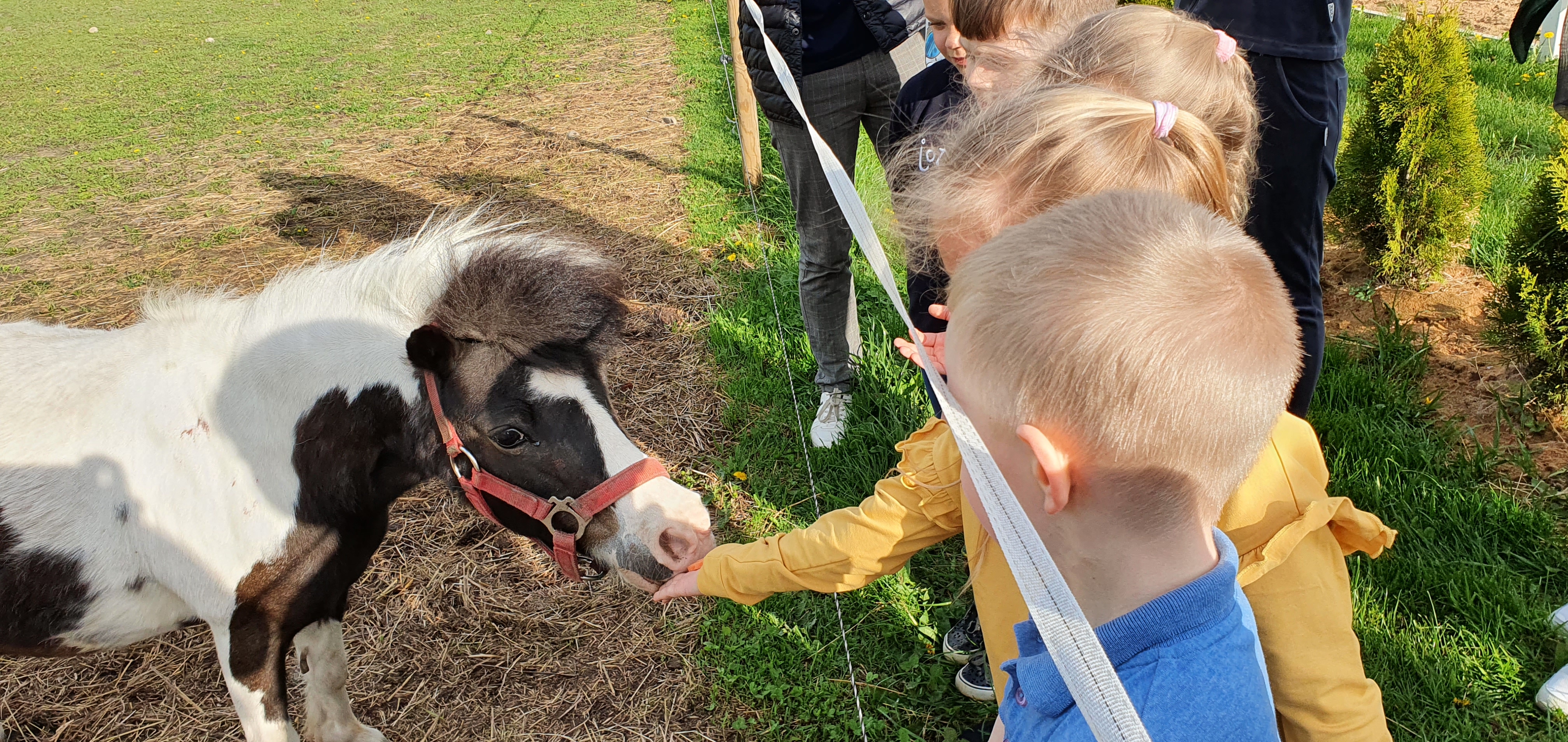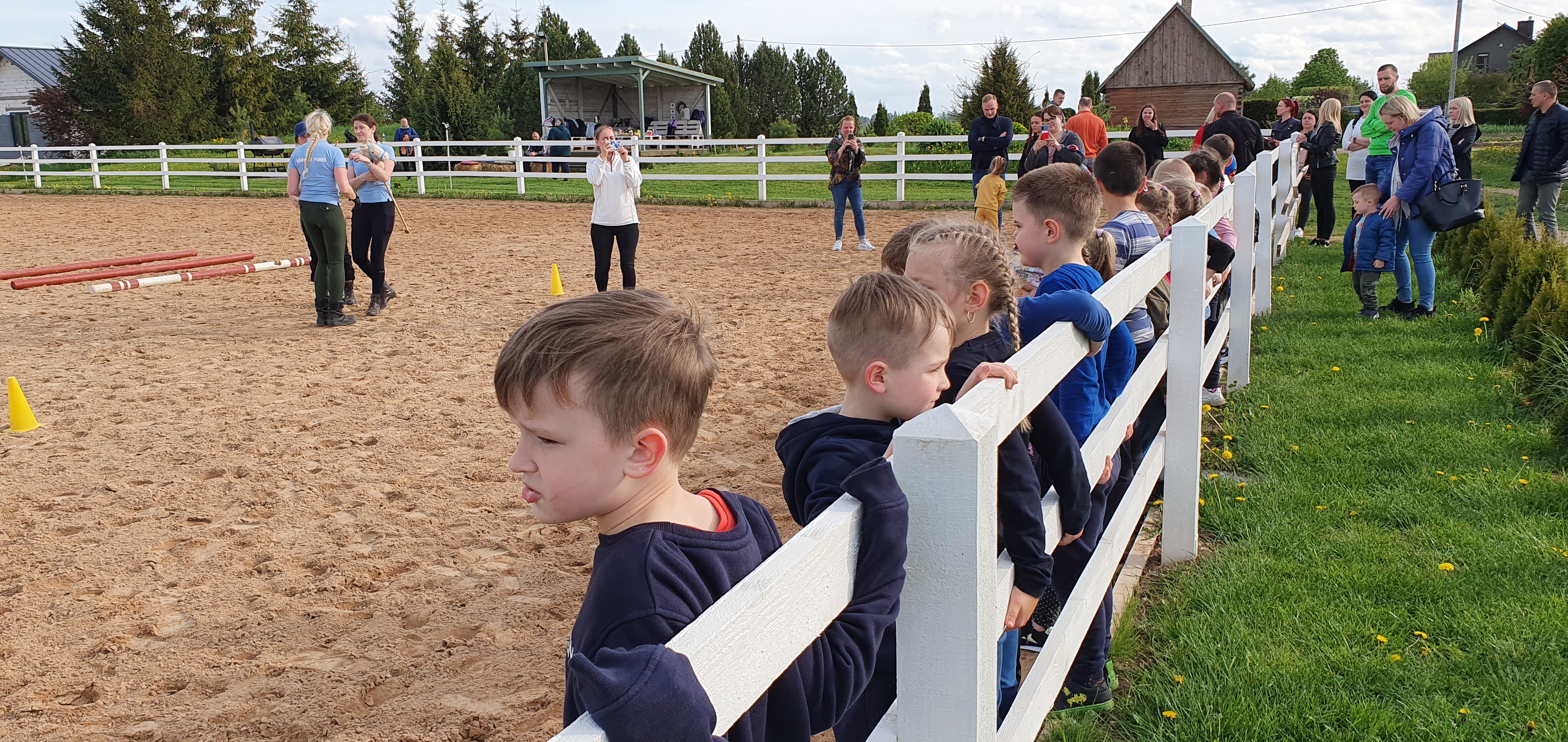 gyventojais. Kiekvienas vaikas pasirinktinai su arkliuku ar poniu apjojo lauko aikštės ratą. Pievomis apsuptoje sodyboje vaikai vaišinosi tėvelių atsivežtomis vaišėmis , žaidė, o tėveliai mėgavosi vieni kitų draugija, šiltai bendravo. Su didžiuliu susidomėjimu lietė, glostė, laikė, džiaugėsi gyvūnėliais, tokia patirtis palietė vaikų širdis, pripildė meilės ir gerumo mažiems gyvūnėliams. Visi kupini naujų įspūdžių, linksmi, draugiškai bendraudami, grįžome namo. Priešmokyklinio ugdymo mokytoja Ingrida Tuomėnienė