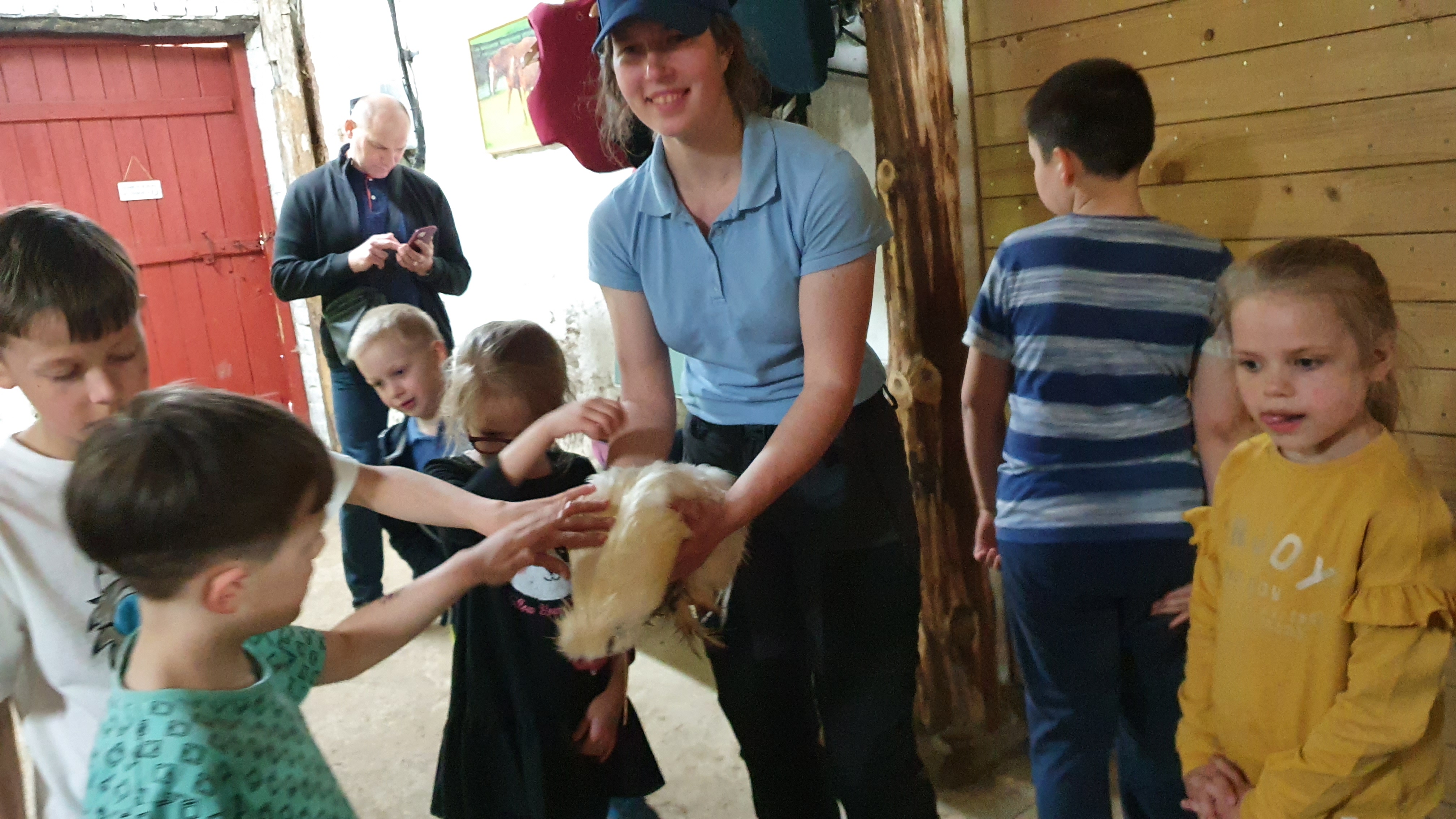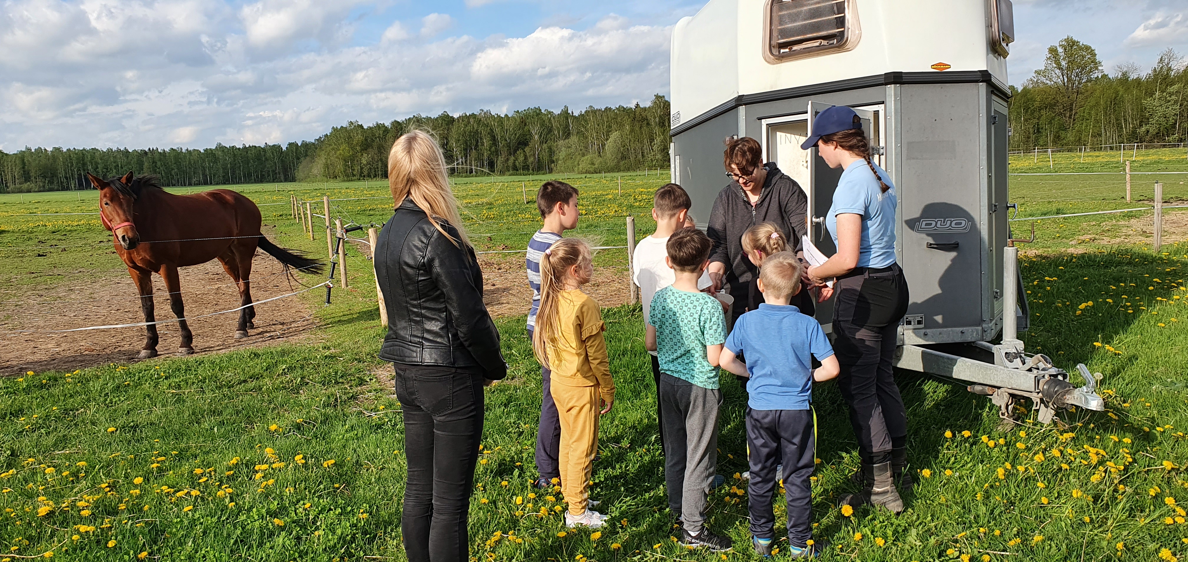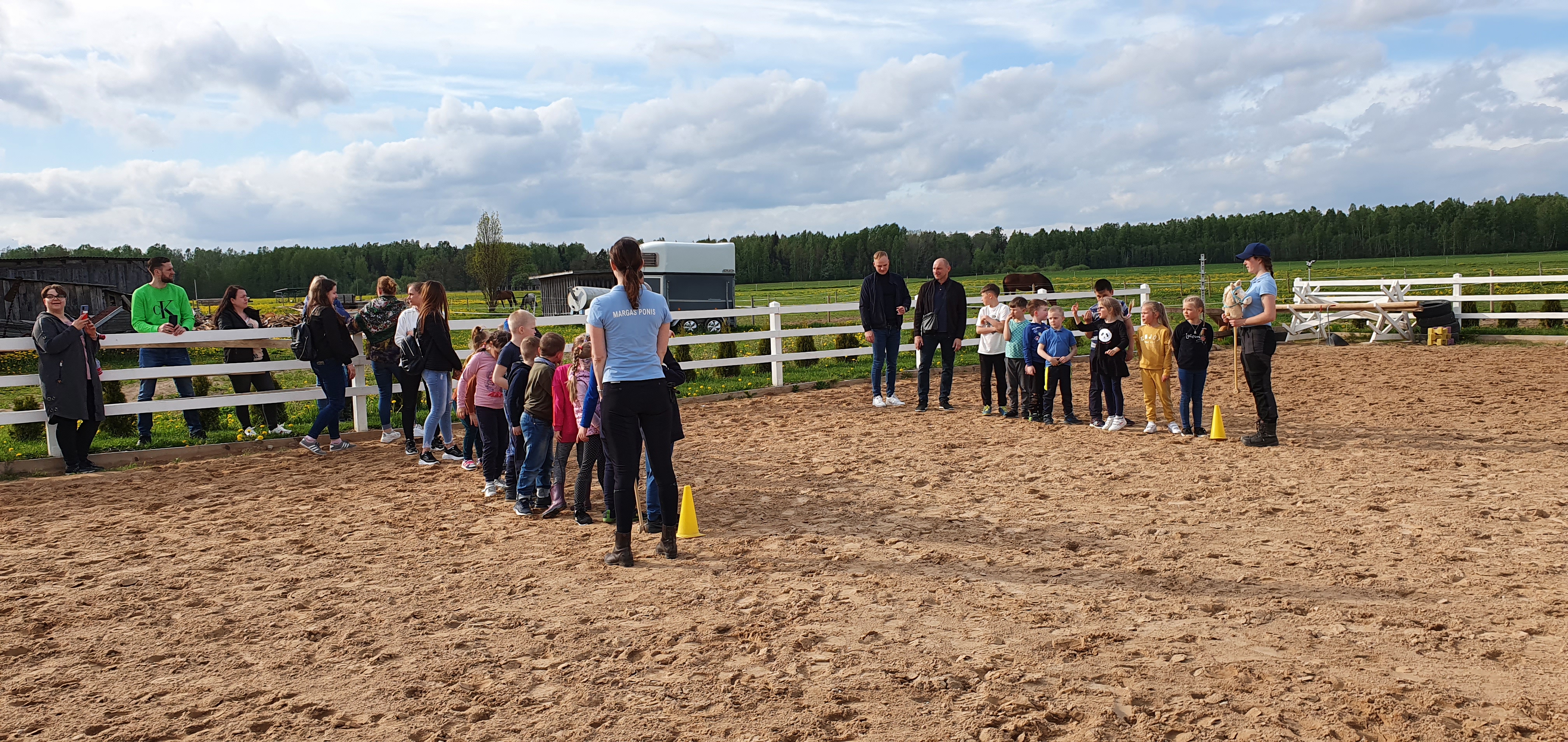 gyventojais. Kiekvienas vaikas pasirinktinai su arkliuku ar poniu apjojo lauko aikštės ratą. Pievomis apsuptoje sodyboje vaikai vaišinosi tėvelių atsivežtomis vaišėmis , žaidė, o tėveliai mėgavosi vieni kitų draugija, šiltai bendravo. Su didžiuliu susidomėjimu lietė, glostė, laikė, džiaugėsi gyvūnėliais, tokia patirtis palietė vaikų širdis, pripildė meilės ir gerumo mažiems gyvūnėliams. Visi kupini naujų įspūdžių, linksmi, draugiškai bendraudami, grįžome namo. Priešmokyklinio ugdymo mokytoja Ingrida Tuomėnienė
