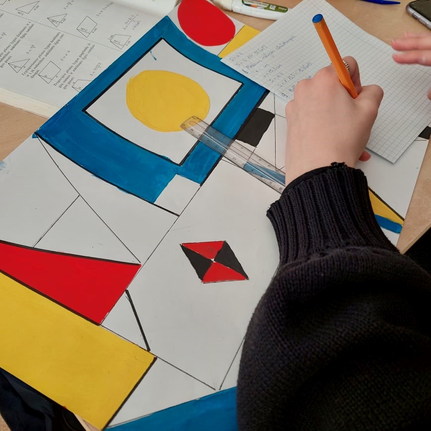 Šiais mokslo metais mokyklos STEAM grupės mokytojai dalyvauja NŠA vykdomame projekte „STEAM ugdymo tobulinimas“. Mokytojai mokymų metu gilino savo žinias, sėmėsi naujų idėjų ir jas taikė praktikoje. Kovo mėnesį mokyklos komandos galėjo pasirinkti vieną ar kelis STEAM iššūkius. Viena komanda pasirinko Petro Kuzmjak school, Serbia iššūkį: „Mokiniai tyrinėja Mondriano meną, kad sužinotų daugiau apie geometrines figūras. Užduoties produktai turėtų susieti Mondriano meną matematiniu turiniu, pvz. plotu, kampais ar kitu.
