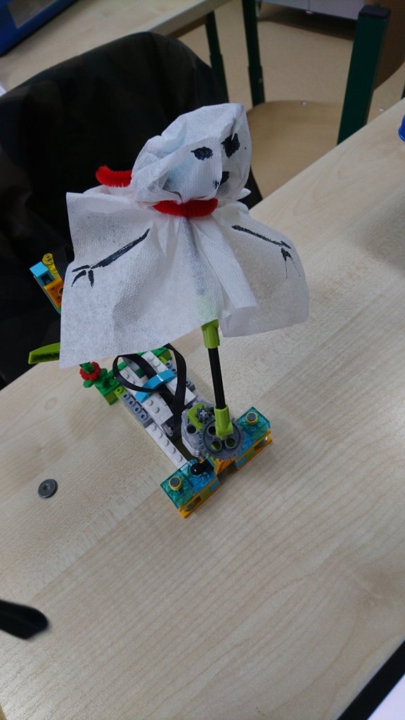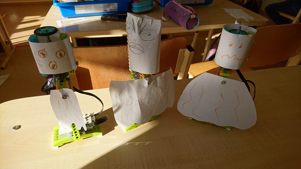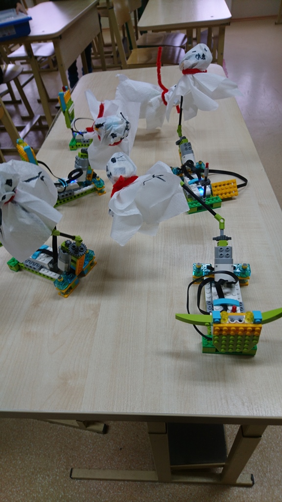 3-6 klasių mokiniai pasitelkę WeDo 2 robotukus ir prisiminę artėjančią Helovino dieną, išliko kūrybingi ir šmaikštūs konstruodami ir programuodami vaiduoklius, monstriukus ar dalyvaudami vabaliukų varžybose.