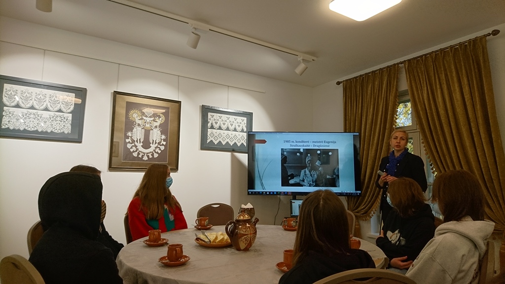 Integruota technologijų ir istorijos pamoka, 8b klasės mokiniai su mokytoja I. Bartkevičiene lankėsi puodžių krašte - Kuršėnuose. Mokiniai susipažino su miestelio istorija, aplankė įžymius objektus, susipažino su L.Ivinskio veikla bei dvaro istorija. Dalyvaudami edukacijoje - degustacijoje „Arbatgėris su tikruoju Kuršėnų vyniotiniu“ mokėsi dvariško stalo etiketo, susipažino kaip gimė ir kada pradėtas gaminti pats didžiausias ir ilgiausiai Kuršėnus garsinęs ir garsinantis brendas – „Kuršėnų vyniotinis.
