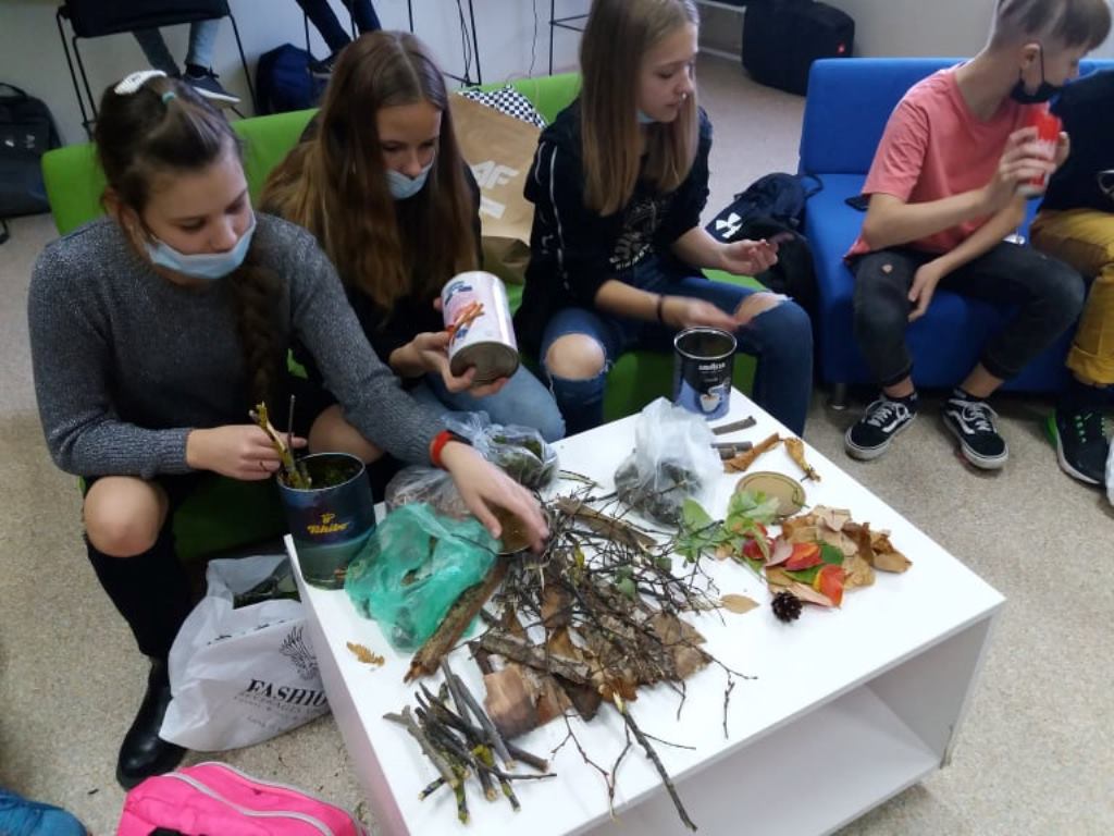 Po išsamios ir įdomios teorinės dalies vaikų laukė praktinė užduotis – iš gamtoje rastų išteklių (medžio šakų, lapų ir buitinių antrinių žaliavų) sukurti vabalų viešbutį, nes įvairūs vabzdžiai ir bitės yra svarbi ekosistemos dalis. Kaip pasakojo G. Bučas, vabalų viešbučiai yra labai svarbūs miestuose, kadangi mažėja medžių, krūmų, todėl nebelieka vietos veistis ir gyventi įvairiems vabalams. Edukatorius demonstravo, kaip sukurti vabalų viešbutį, o edukacijos dalyviai kartu pasigamino šiuos viešbučius, kuriuos pakabino ant rudenėjančių medžių.
