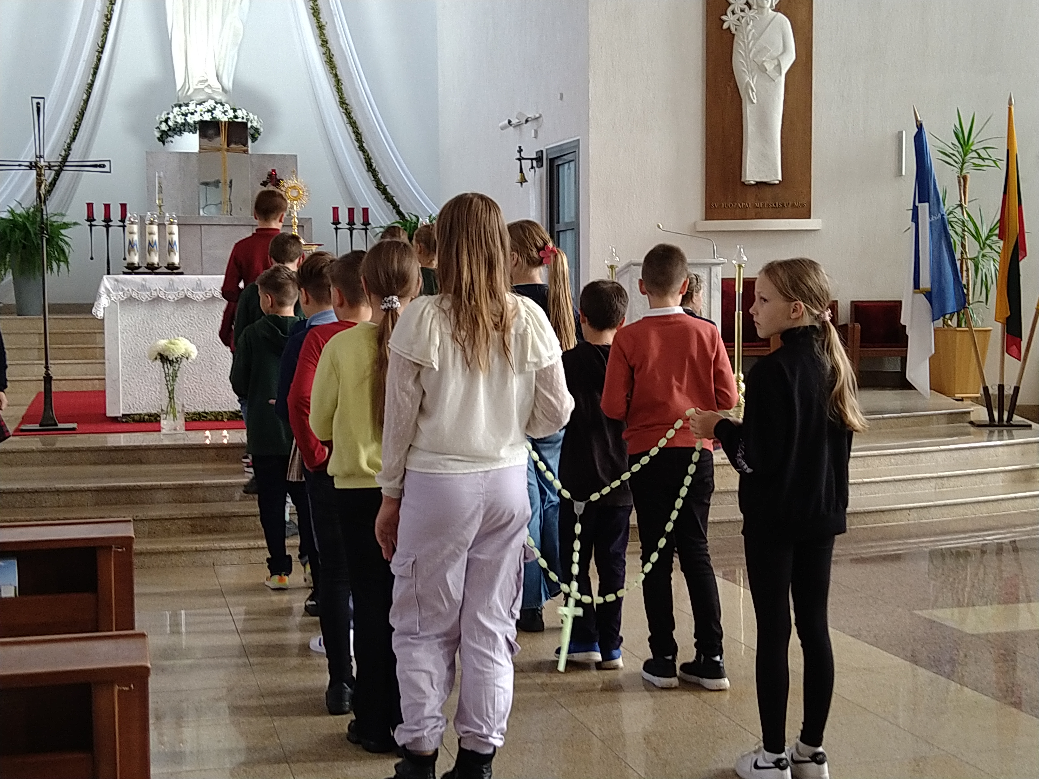 Jėzus yra čia. Mes tikime, kad Jėzus tikrai yra Švenčiausiajame Sakramente. Norime išreikšti savo tikėjimą ir parodyti Jam savo meilę.“ – tokiais giliais ir prasmingais žodžiais buvo pradėta švęsti Pasaulinė vaikų adoracijos diena mūsų ŠMMNP parapijos bažnyčioje. 5-ių pietinio rajono mokyklų mokiniai, tame tarpe ir mūsų Gytarių progimnazijos ketvirtokai dalyvavo šioje gražioje šventėje. Dievo palaimos vaikučiai prašė ne tik sau, bet ir savo tėveliams, seneliams, sesutėms, broliukams ir mokytojams bei visiems, kurie veda jaunimą į gėrį. Adoracijos pabaigoje visus dalyvius palaimino kunigas Gediminas ir palinkėjo niekada neprarasti tikro tikėjimo. Dėkojame visiems aktyviai dalyvavusiems 4a ir 4b kl. mokinukams. Tikybos mokytoja Nijolė M. .