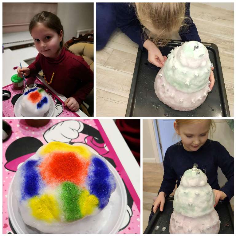 Viskas kas vyksta aplinkoje, vaikui be galo įdomu, jis nori paliesti, užuosti, paragauti, suvokti pasaulį. Gamta ir joje esantys reiškiniai vaikams be galo artimi ir įdomūs. O kai gamta padovanoja tiek sniego ir šalčio, galima tyrinėti, atrasti, stebėti...PUG 3 mokinukai susipažino su medžiagų būsenomis: skysta – kieta. Nulipdę sniego tortą tapė jį įvairiomis spalvomis, dekoravo žaislinėmis figūrėlėmis. Vėliau stebėjo, per kiek laiko sniegas kambario temperatūroje ištirpsta, lygino, matavo, rikiavo nuo didžiausio vandens kiekio iki mažiausio. Buvo pastebėta, kad ilgiausiai tirpo didžiausias tortas, o spalvos susilieja į vieną „murziną" spalvą. Atliko eksperimentą „Ledinė žvejyba": į stiklinę įpylė vandens, įmetė ledo gabalėlių, įmerkė iš pieštuko ir siūlo pagamintas meškeres ir užbėrė druskos. Vaikai stebėjo, kaip druska tirpdo ledą, druskos pagalba siūlas prišąla prie ledo. Visi drauge padarė išvadą – druskai tirpstant vandenyje, vanduo atšąla ir siūlas prišąla prie leduko. Vaikams labai patiko „Ledo mozaika" . Sudėję įvairią medžiagą, į indelius, viską užpylė vandeniu ir padėjo šalti lauke. Šaltis sustingdė mozaikas ir visi galėjo džiaugtis rezultatu. Mokinukai išbandė ir IT technologijas : pasitelkę 3D vaizdą https://www.mozaweb.com/lt/ stebėjo vandens apytakos ratą. Vanduo žemėje yra nuolat besikeičiančios būklės. Vandens ciklas apima tokius procesus kaip garavimas, kondensacija, tirpimas ir užšalimas. O kai sniegas už lango ištirpsta, visada galima pasigaminti dirbtinio sniego patiems ir besmegenius lipdyti lėkštėje.