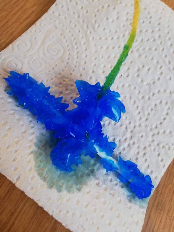 Aštuntų klasių mokiniai vykdė STEAM veiklą pavadinimu „Kristalų auginimas". Kristalai – tai kietieji kūnai, turintys tvarkingą vidinę struktūrą, sudarytą iš tvarkingai išsidėsčiusių dalelių: molekulių, atomų arba jonų. Kristalų auginimui galima pasirinkti įvairių druskų. Nuo to priklauso, kokios spalvos kristalus gausime.Kad formuotųsi kristalai, reikia pagaminti kristalizuojamos druskos sotųjį tirpalą ir į jį įleisti siūlu apsuktą vielutę. Po kiek laiko pradės formuotis pirmieji kristalai.