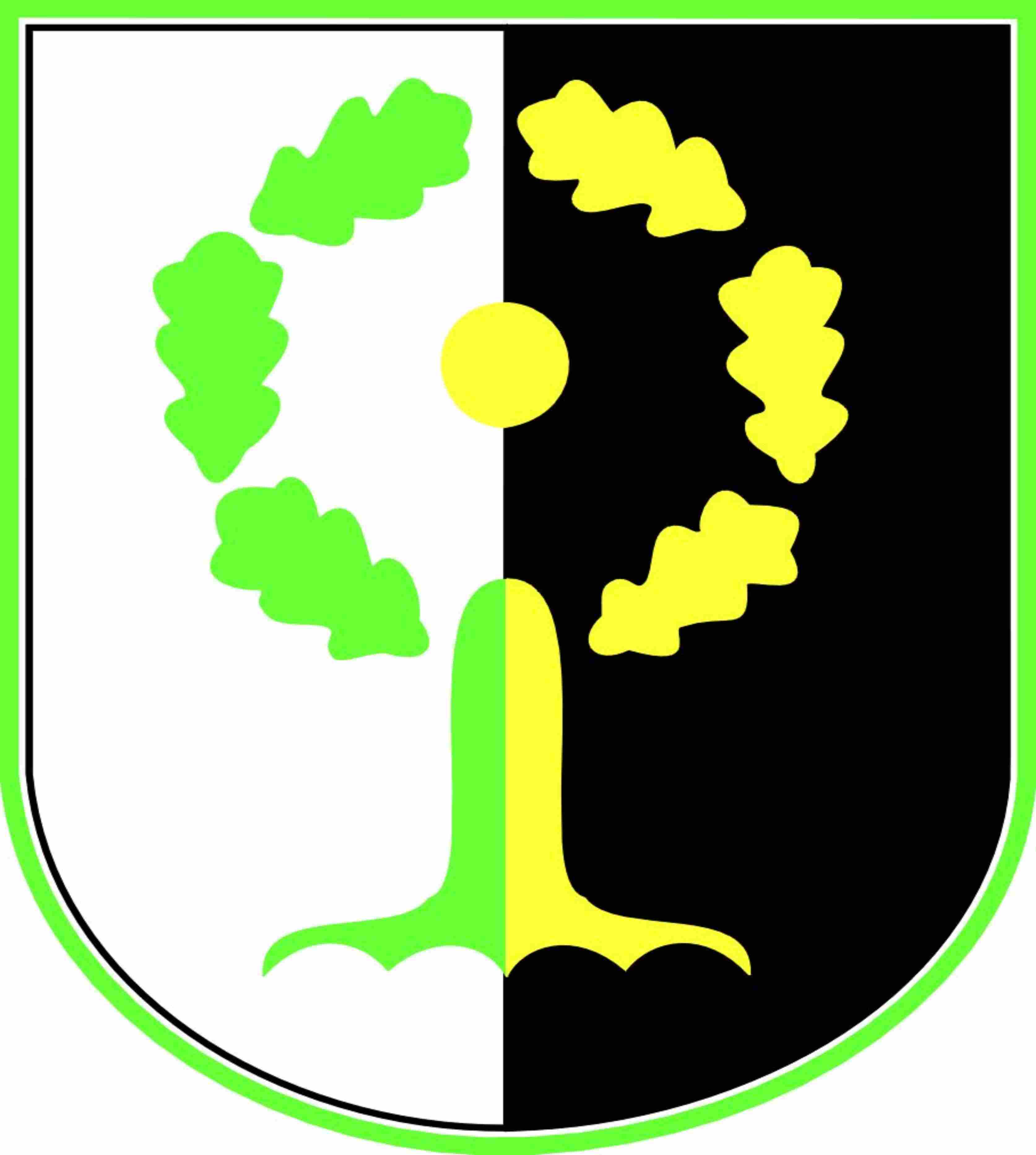 Skydas padalintas į baltą (sidabrinį) ir juodą laukus. Jame vaizduojamas simbolinis Pasaulio/Gyvybės medis, perteikiamas stilizuoto ąžuolo su saulės disku lajos vainiko centre pavidalu. Ąžuolo laja pavaizduota kaip šešių ąžuolo lapų vainikas, juosiantis geltoną (auksinį) saulės diską apskritimu. Priekiniame baltame (sidabriniame) skydo lauke vaizduojama ąžuolo pusė žalia. Užpakaliniame juodame skydo lauke vaizduojama ąžuolo pusė geltonas (auksinis).