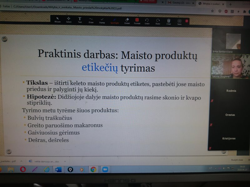 Birželio 10 dienos veiklas mokiniai pradėjo mokyklos visuomenės specialistės Sabinos paskaita apie sveiką maistą ir maiste esančius priedus. Mokiniai kartus su specialiste analizavo maisto priedų poveikį organizmui, tyrinėjo maisto produktų etiketes bei pasitikrino žinias atlikdami trumpą apklausą.
