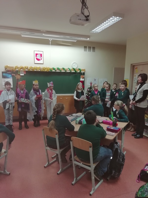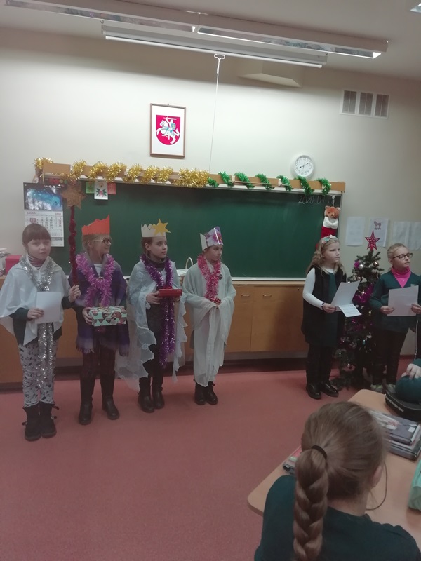 Pasibaigus Žiemos atostogoms į mūsų mokyklą atvyko garbingų svečių: Trys Karaliai su visa palyda. Juos atlydėjo kelrodė žvaigždė. Štai ką šie garbūs žmonės mums papasakojo:„Kasparas , Merkelis ir Baltazaras buvo išminčiai, stebėję dangaus kūnų judėjimą. Netikėtai danguje sužibusi ryški žvaigždė sudrumstė jų ramybę, mat pranašystės skelbė, kad tokio šviesulio pasirodymas sutaps su atpirkėjo atėjimu į žemę. Taigi išminčiai nutarė aplankyti Kūdikį ir išrinkę jam dovanas – aukso, smilkalų ir miros – leidosi į kelionę. Ant durų ar staktos šventinta kreida užrašytos pirmosios jų vardų raidės saugo namus nuo piktųjų dvasių, vagysčių ir nelaimių. Tūkstančius metų auksas, smilkalai ir mira simbolizavo prabangą, priklausančią dievams ir valdovams. Į užmarštį nuėjo šimtmečiai, dulkėmis pavirto senovės civilizacija, bet mira ir smilkalai vis dar yra labiausiai vertinami, prašmatniausi kvepalų komponentai, o auksas – prabangiausia jų pakuotė."