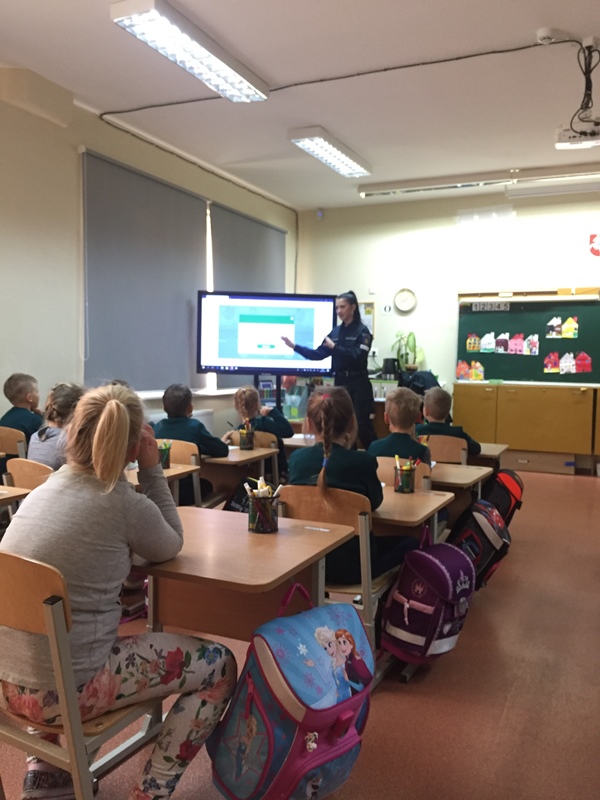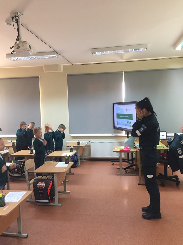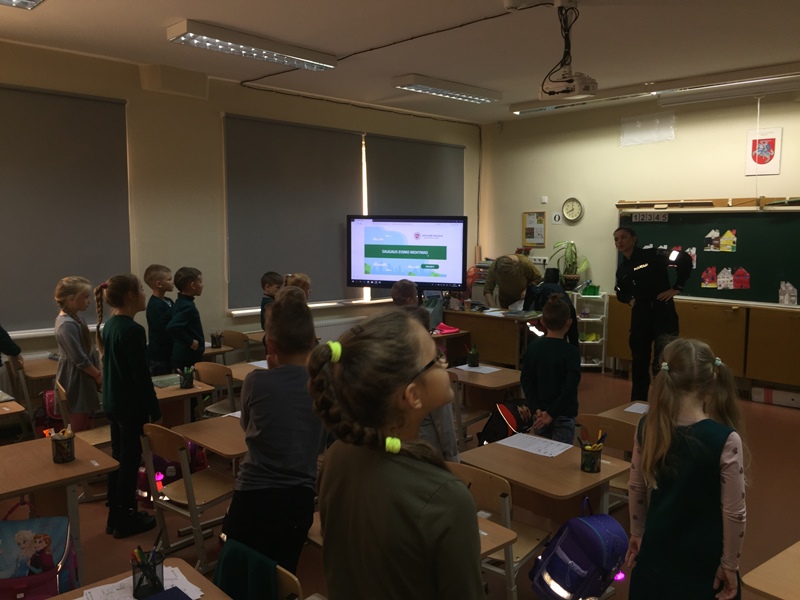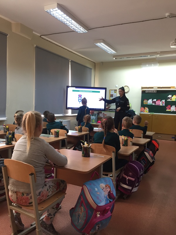 Šiandien (t.y. 09 24d.) mokykloje viešėjo Šiaulių miesto bendruomenės pareigūnė, kuri vedė pirmokams saugaus eismo pamokėles. Vaikai įgijo pradinių žinių ir praktinių įgūdžių apie eismo dalyvių elgesį kelyje, gatvėje, kieme. Sužinojo kokie pavojai slypi šalia mūsų, kaip jų išvengti.