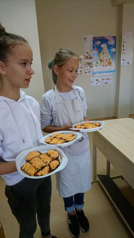 Na o šį kart mokykloje veikė ir sveiko maisto kavinė, kuri pačių mokinių gamintus sveikus patiekalus kvietė ragauti visą bendruomenę.