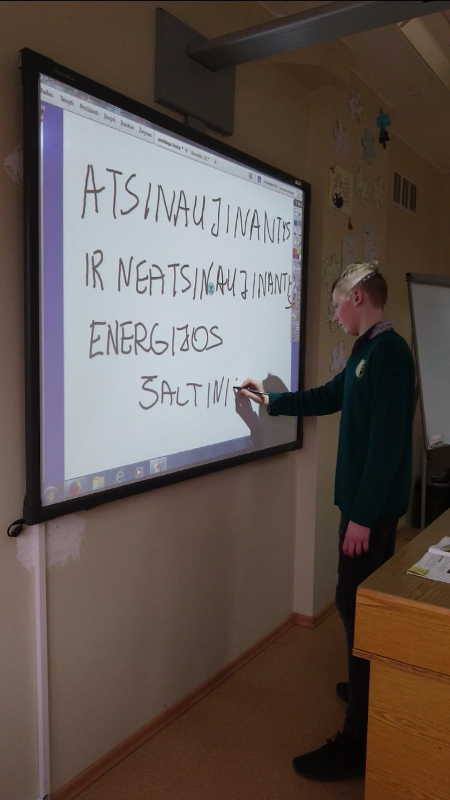 Integruota gamta ir žmogus, IT ir anglų kalbos pamoka 6 klasei pasitelkus išmaniąsias technologijas - microb:bit kompiuteriukus. Integruotos veiklos metų mokiniai analizavo atsinaujinančius ir neatsinaujinančius energijos šaltinius, globalias pasaulio problemas, ieškojo problemų sprendimo būdų anglų kalba pasitelkus micro:bit kompiuteriukus, programavo. Mokykla - projekto „Kompiuteriukų ralis IT pamokas keičianti kelionė" dalyvė.Projekto vykdytojai mokytojos I. Bartkevičienė, A. Jogminienė, R. Norūtienė
