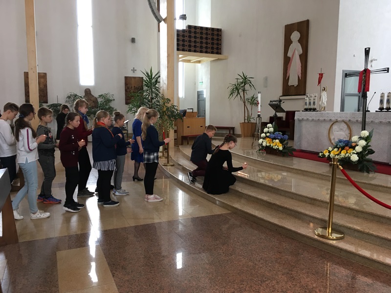 Visi 5-8 kl. mokiniai, lankantys tikybą, susipažino su ŠMMNP bažnyčios istorija, piešė piešinius ir kūrė maldeles. 11 aktyviausiųjų ir stropiausiųjų juos pristatė šventiniame renginyje, kuris vyko š.m. gegužės 14d. mūsų bažnytėlėje: